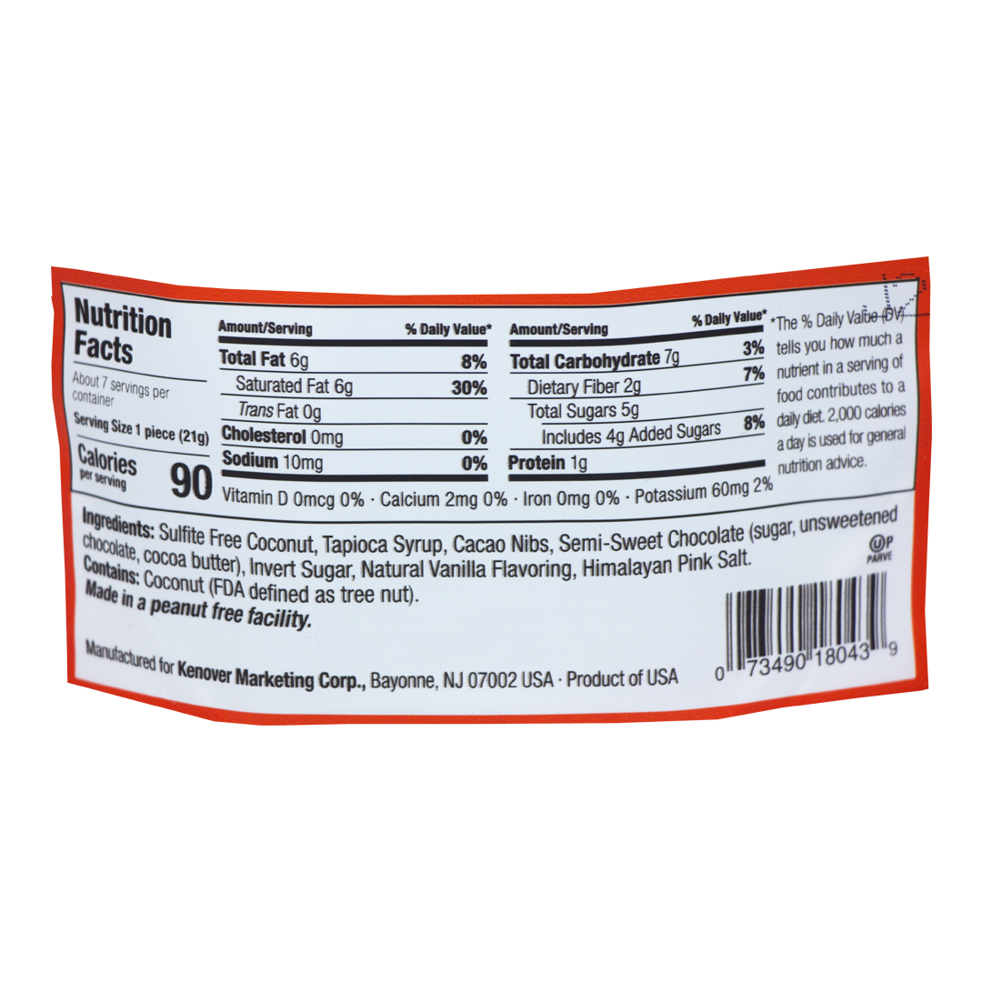ABSOLUTAMENTE DELICIOSOS Masticables de coco y chocolate sin gluten DELICIOSO: la textura de coco fresco y masticable hace que estos masticables del tamaño de un bocado sean un placer que todos pueden disfrutar. GRAB & GO- Convenientemente empaquetado en un ouch resellable, de pie para que pueda llevarlo a cualquier parte. Además, están envueltos individualmente para comer y compartir de forma segura. TODO NATURAL: fabricados con coco sin sulfito, estos masticables están llenos de sabor a coco y chocolate, una pareja perfecta. Están llenos de sabor y no dejan lugar a la culpa.