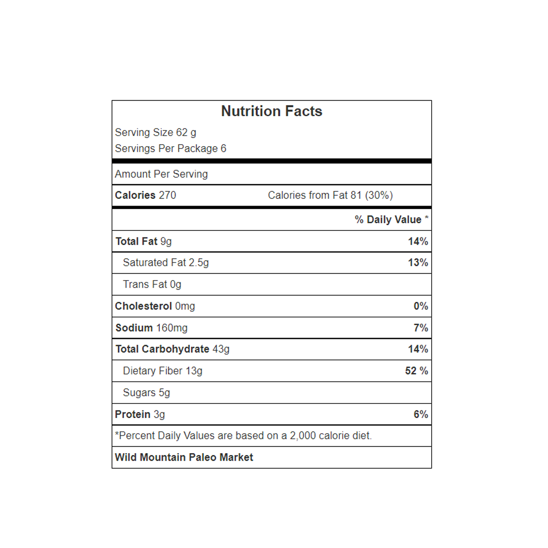 Chufas (Tigernuts) molidas orgánicas, harina de tapioca, crémor tártaro, bicarbonato de sodio.