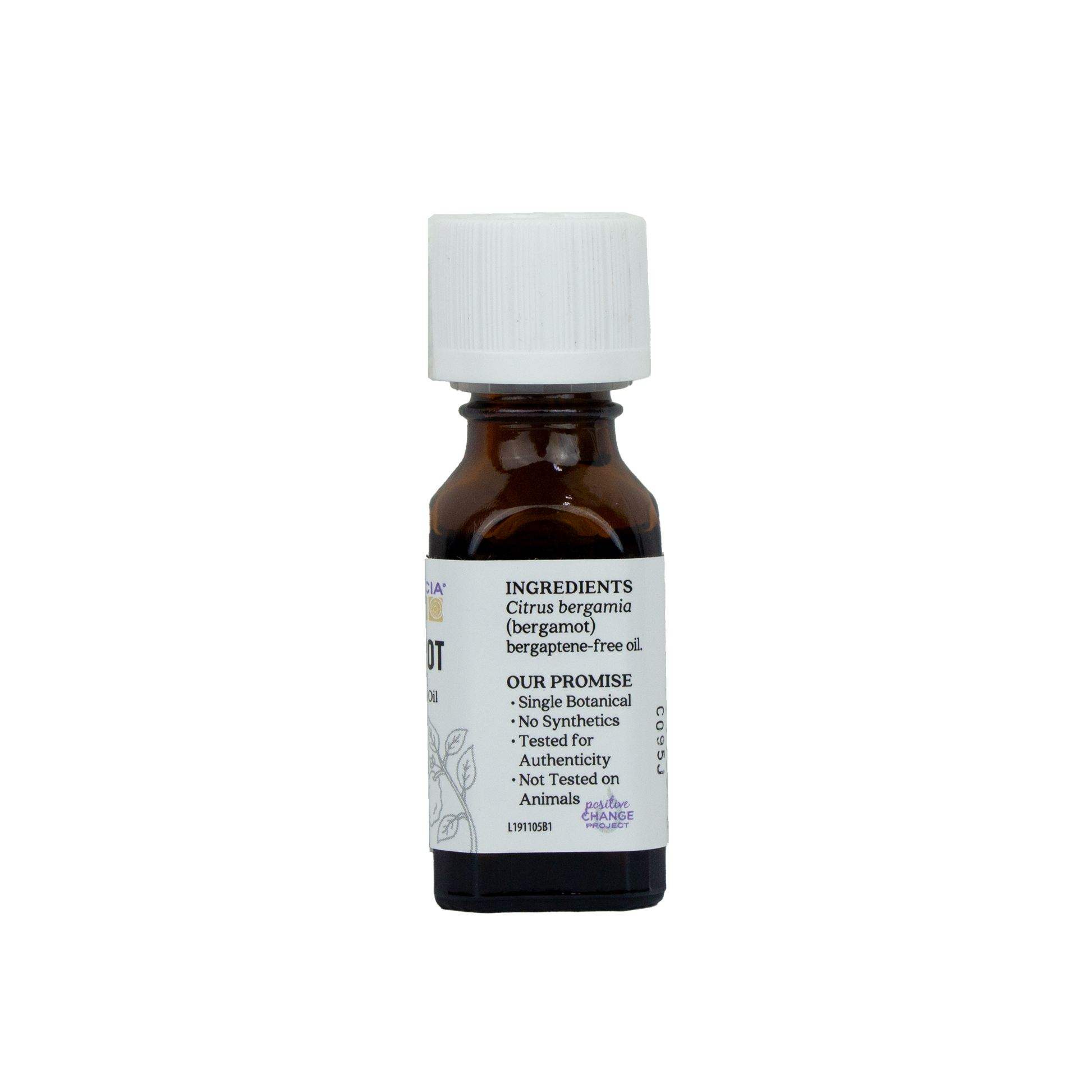 El aceite esencial de bergamota Aura Cacia generalmente proviene de Italia. Al igual que otros aceites cítricos, la bergamota se obtiene por expresión en frío de las cáscaras de frutos verdes.