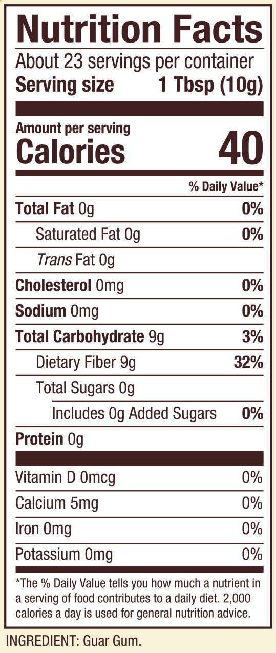 La goma guar es una sustancia similar a la harina elaborada a partir de la semilla de una planta originaria del sudeste asiático. Use pequeñas cantidades como espesante para salsas y aderezos, o como aglutinante y potenciador de volumen para productos horneados. Es un ingrediente popular para hornear sin gluten.