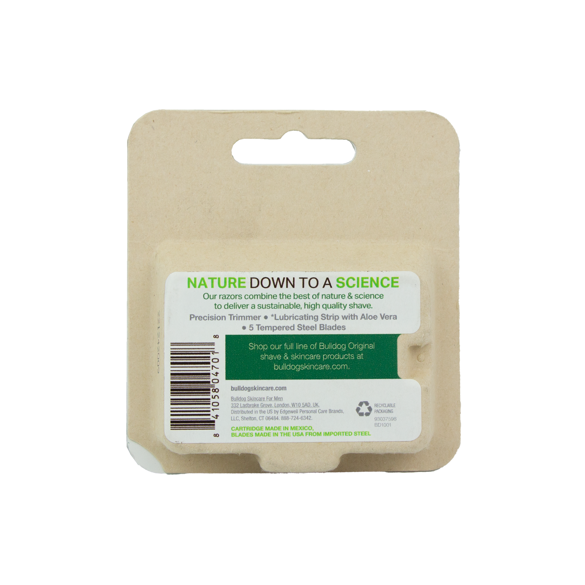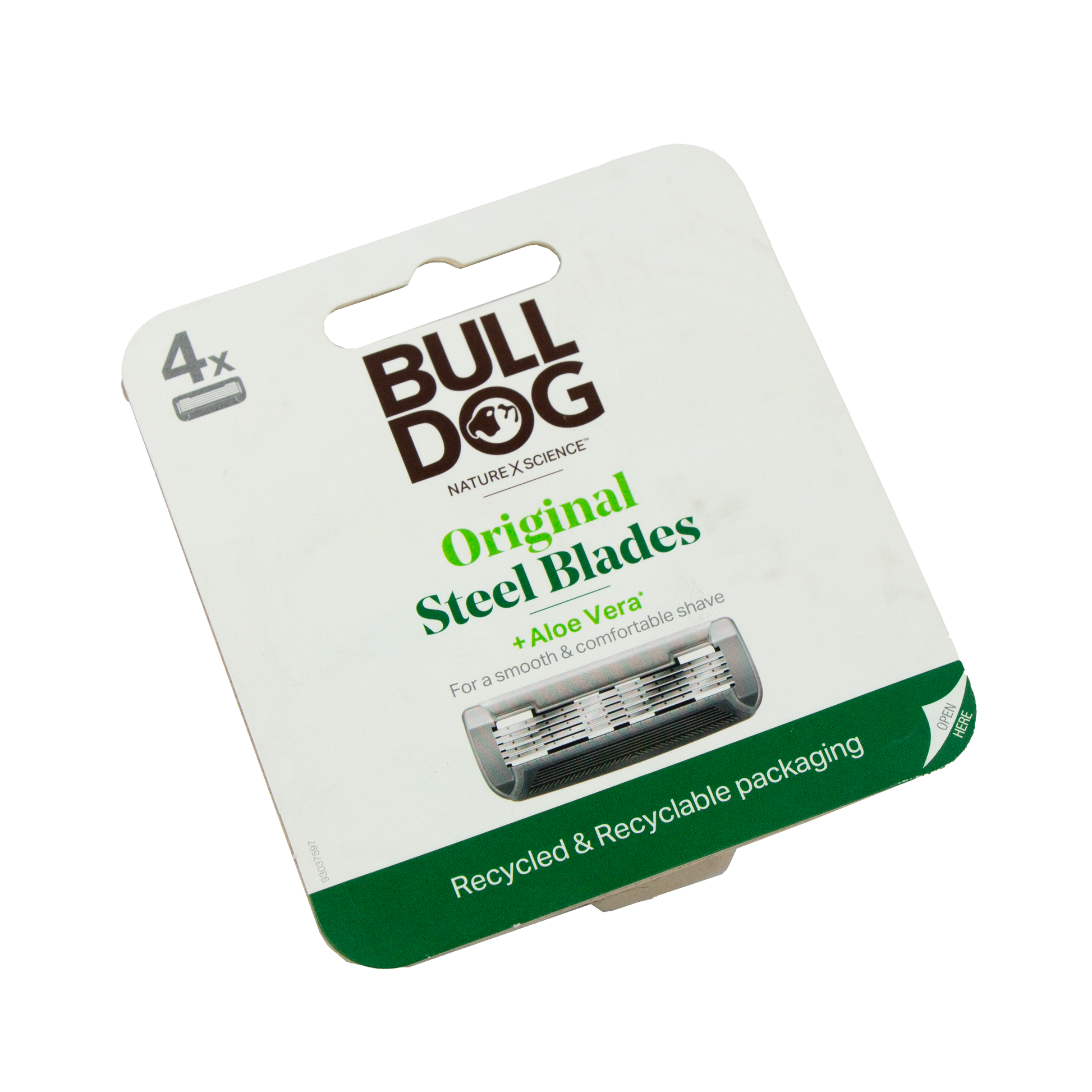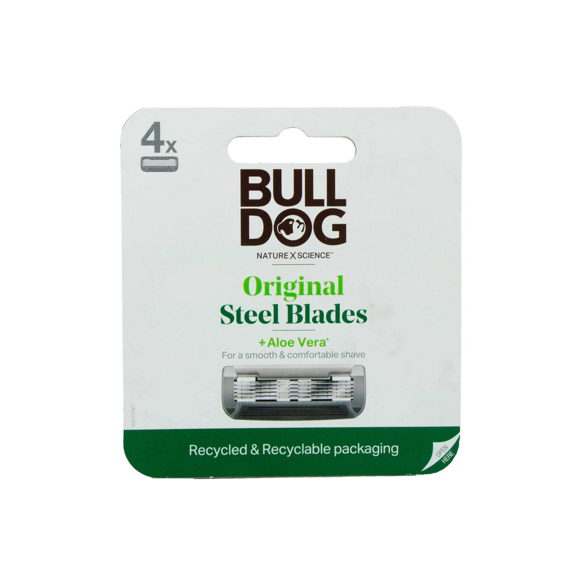 Sus hojas de acero originales ofrecen cuatro cartuchos de recarga que se adaptan a cualquiera de nuestras maquinillas de afeitar Bulldog. Con cinco cuchillas de acero templado, una tira lubricante con aloe y un recortador de precisión y un diseño pivotante, ofrecen todo lo que necesitas para un afeitado cómodo y al ras.
