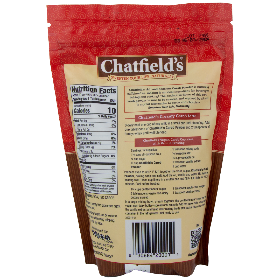 Este polvo natural de un solo ingrediente no solo no contiene cafeína ni grasa, sino que también es una buena fuente de fibra. Tiene un sabor suave y cremoso que hará que todas tus recetas favoritas sean mucho más deliciosas. El polvo de algarrobo de Chatfield contiene más calcio que el cacao, lo que lo convierte en la bebida y el refrigerio perfecto para usted y su familia, especialmente ideal para un cremoso latte o batido de algarroba.