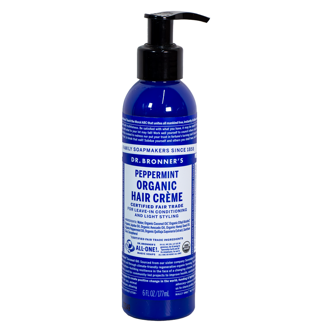 Las cremas para el cabello orgánicas del Dr. Bronner brindan una fijación ligera al peinado y dejan el cabello suave como la seda, ¡sin ningún ingrediente sintético! El aceite de coco orgánico aporta brillo y fuerza al cabello, el aceite de jojoba orgánico aporta manejabilidad y sensación, y el aceite de semilla de cáñamo cultivado en EE. UU. hidrata y suaviza el cabello.