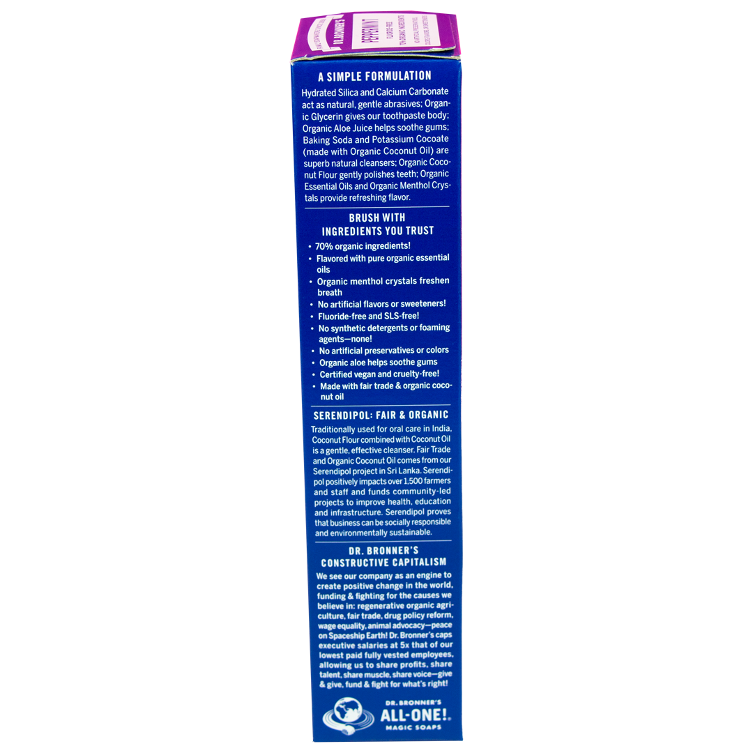 Con la pasta de dientes de menta del Dr. B. Formulado con aceite de menta orgánico y cristales de mentol orgánico, es una limpieza fresca y nítida que esperará cada mañana y noche.