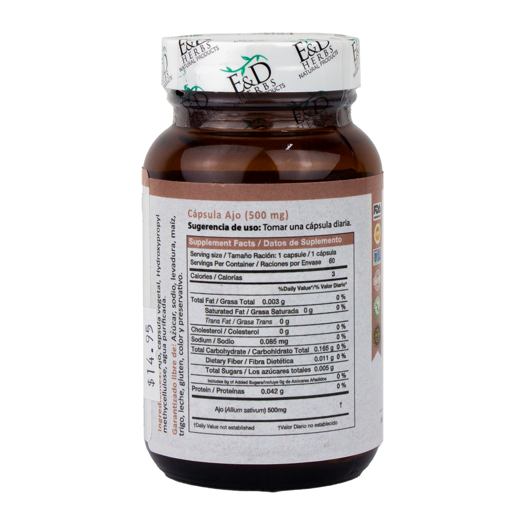 Ingredientes: Ajo, cápsula vegetal, hydroxypropyl methycellulose, agua purificada
