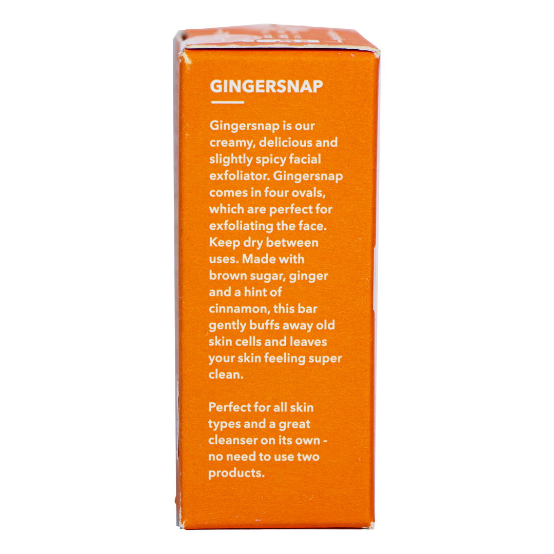 Revela una piel suave y radiante con Gingersnap, nuestro delicado exfoliante facial para todo tipo de piel. Con una deliciosa mezcla de jengibre y canela, esta barra fragante elimina suavemente la piel muerta con azúcar y piedra pómez finamente molida (aquí no se ven microperlas de plástico), dejándote una piel súper suave y tersa. ¡Perfecto para la opacidad, la sequedad, los puntos negros, la grasa y el tono desigual de la piel!