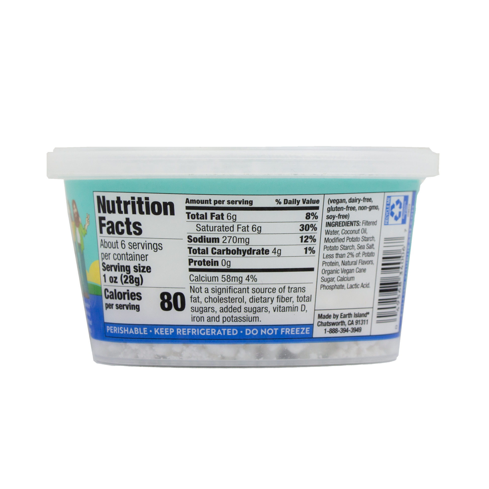 Agua filtrada, aceite de coco orgánico, almidón de papa modificado, almidón de papa, sal marina, menos del 2% de: proteína de papa, sabores naturales, azúcar de caña orgánica vegana, fosfato de calcio, ácido láctico.