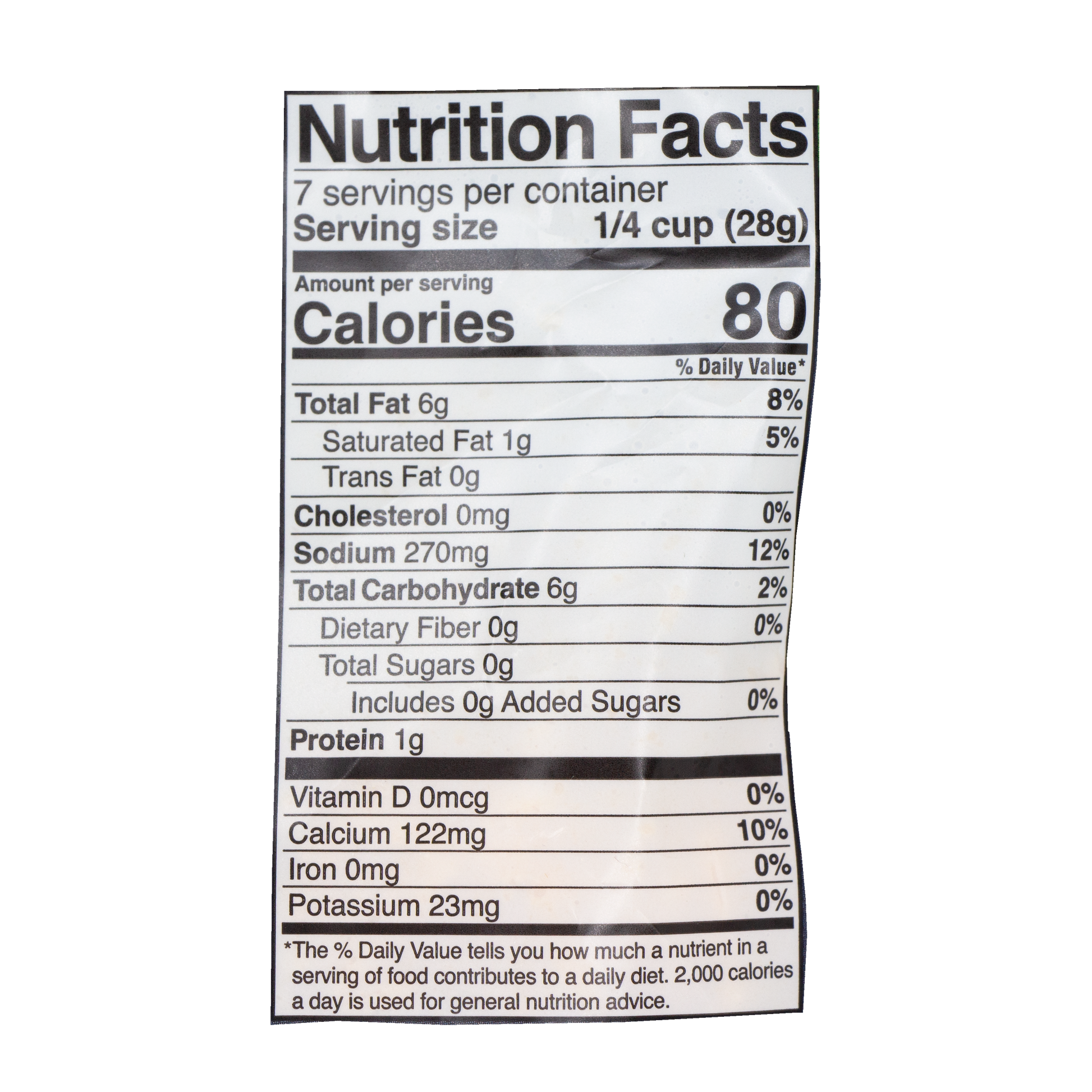 Agua filtrada, aceite de oliva, almidón de patata, almidón de tapioca, proteína de faba, sabores naturales (fuentes veganas), sal marina, citrato de calcio, dextrosa, goma de algarroba, goma xantana, pimentón y betacaroteno (color), celulosa en polvo añadida para prevenir Apelmazamiento