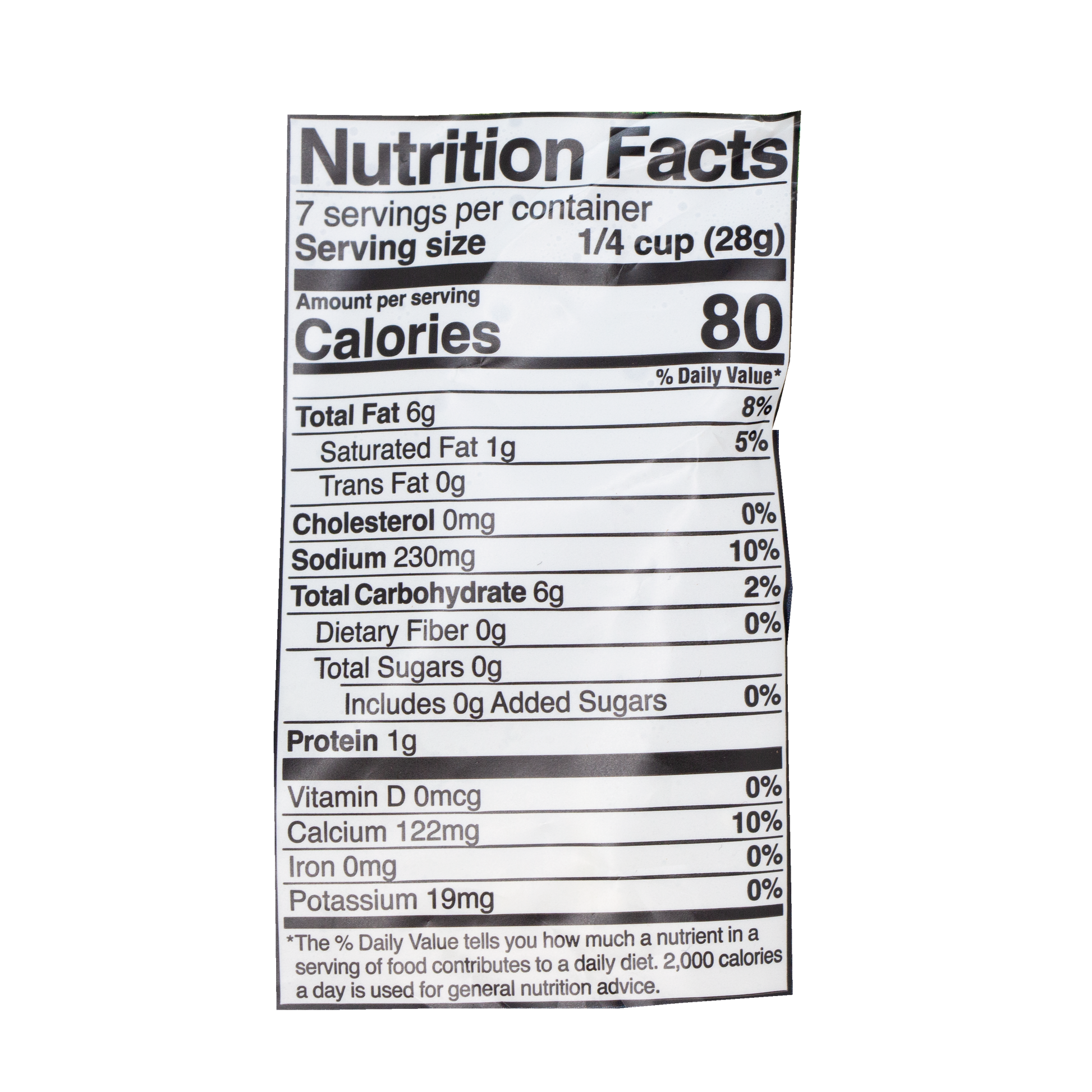 Agua filtrada, aceite de oliva, almidón de patata, almidón de tapioca, proteína de faba, sabores naturales (fuentes veganas), sal marina, citrato de calcio, dextrosa, goma de algarroba, goma xantana, extractos de achiote y cúrcuma (color), celulosa en polvo añadida para prevenir Apelmazamiento