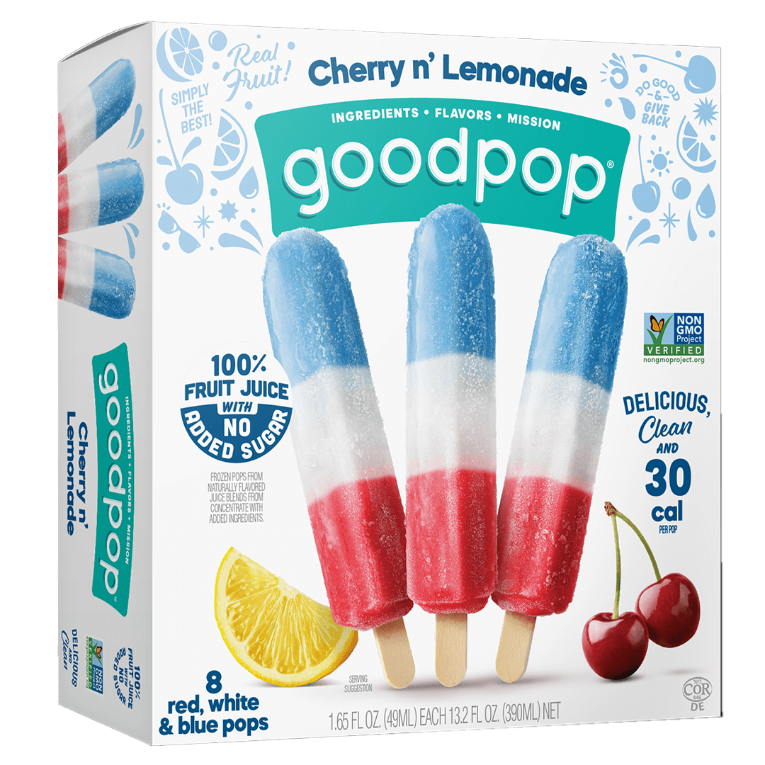Abastécete con un paquete de 8 de nuestras paletas rojas, blancas y azules. Este regalo de verano clásico verdaderamente limpio es brillante y dulce. El sabor Cereza + Limonada contiene 100% jugo de fruta y sin azúcar agregada. Es un pop congelado deliciosamente nostálgico que es vegano, sin gluten, verificado por un proyecto sin OGM y OU Kosher. Nuestro rojo, blanco y azul es un placer sin culpa que lo llevará de vuelta a su infancia, sin sabores artificiales, colores ni azúcar añadida. Con solo 35 calorías y 8 gramos de azúcar contenidos naturalmente en el jugo de frutas, es un elemento esencial para el verano que puede sentirse bien al disfrutar y compartir con sus hijos.
