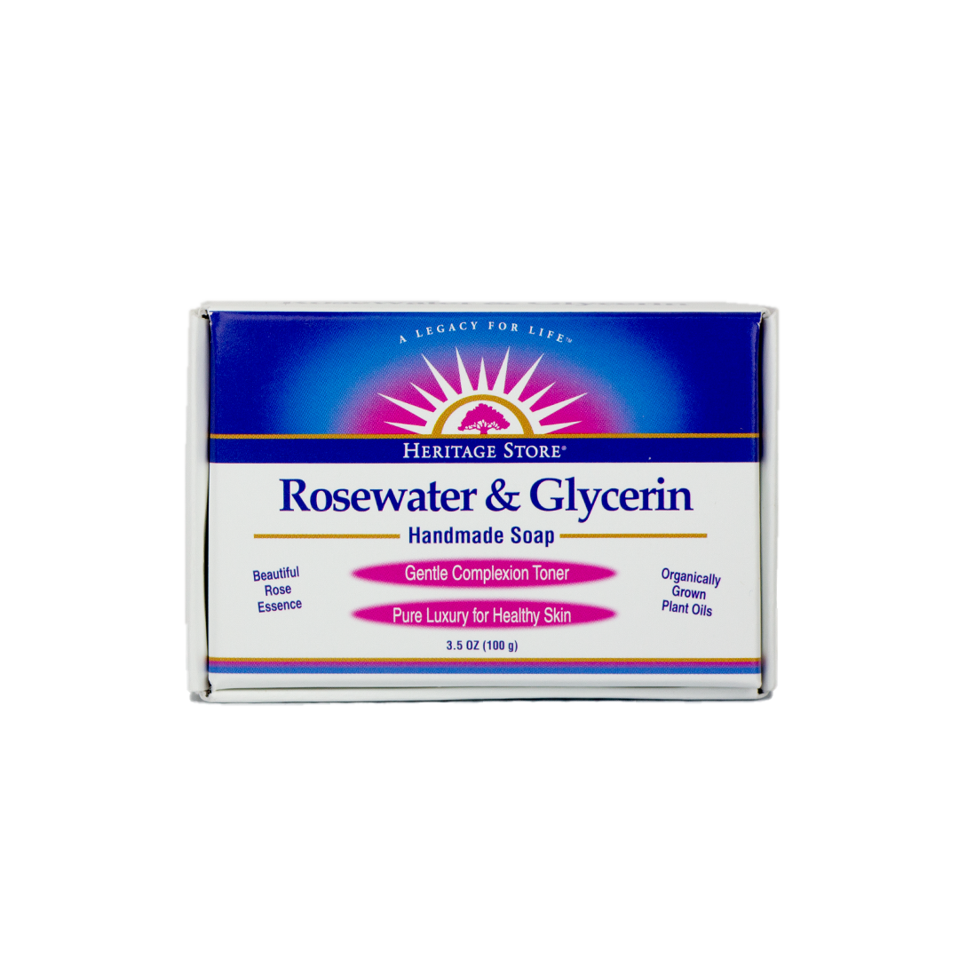 Confíe en el jabón hecho a mano de agua de rosas y glicerina de Heritage Store para humectar, limpiar, nutrir y proteger su piel de la manera en que la Madre Naturaleza pretendía.
