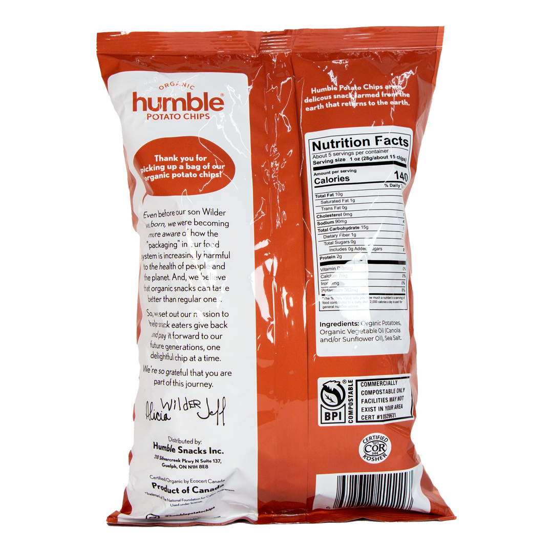 Una sutil capa de sal marina, lo suficientemente suave como para dejar pasar el sabor natural de la papa orgánica.