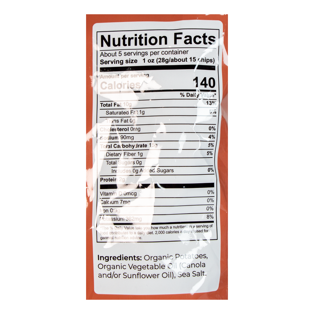 Papas Orgánicas, Aceite de Girasol Orgánico y/o Canola Orgánico, Sal Marina.