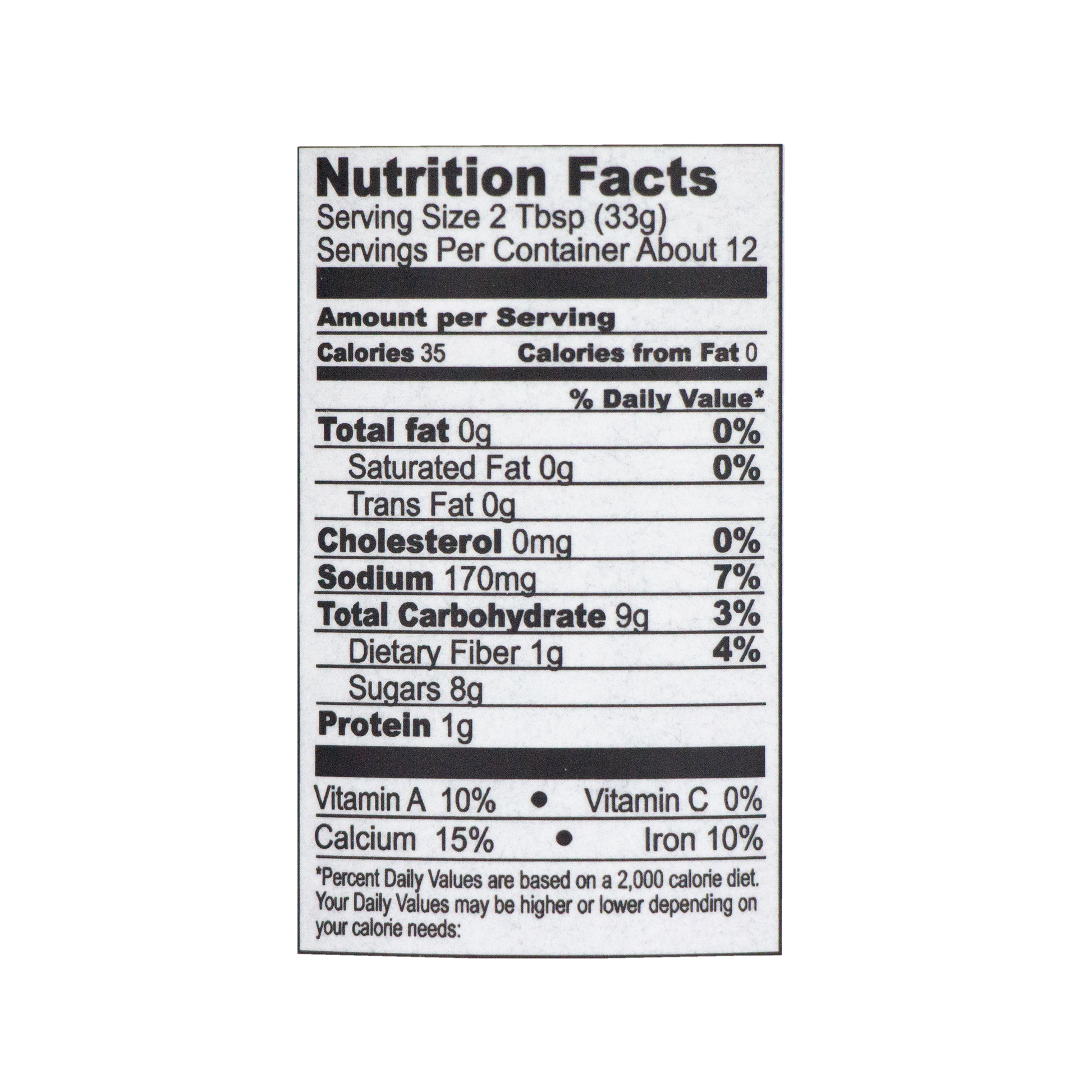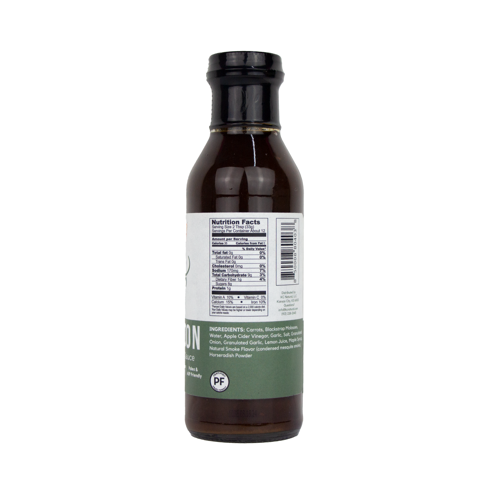 Ingredients: Carrots, Molasses, Water, Apple Cider Vinegar, Garlic, Salt, Granulated Onion, Granulated Garlic, Lemon Juice, Maple Syrup, Natural Smoke Flavor (condensed mesquite smoke), Horseradish Powder