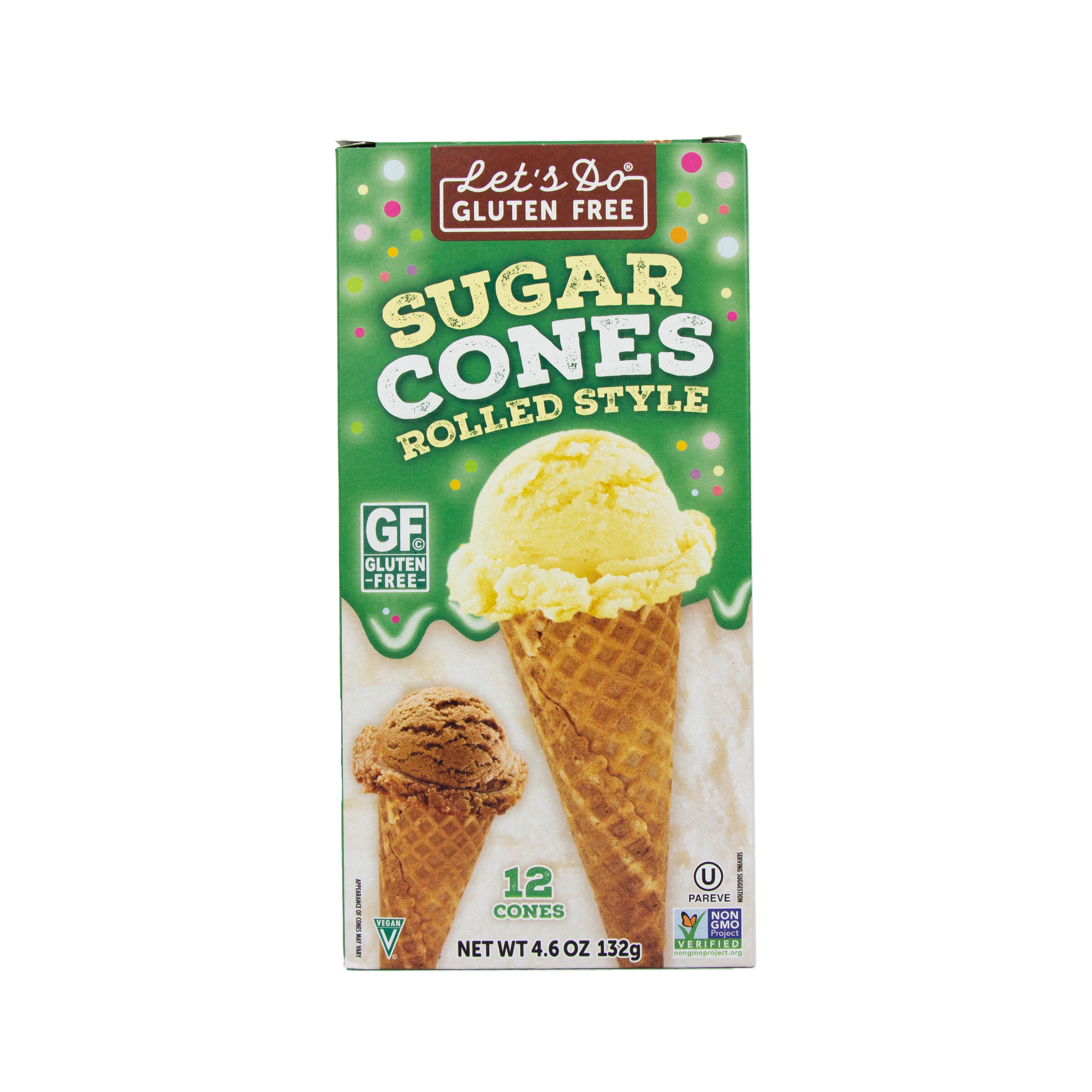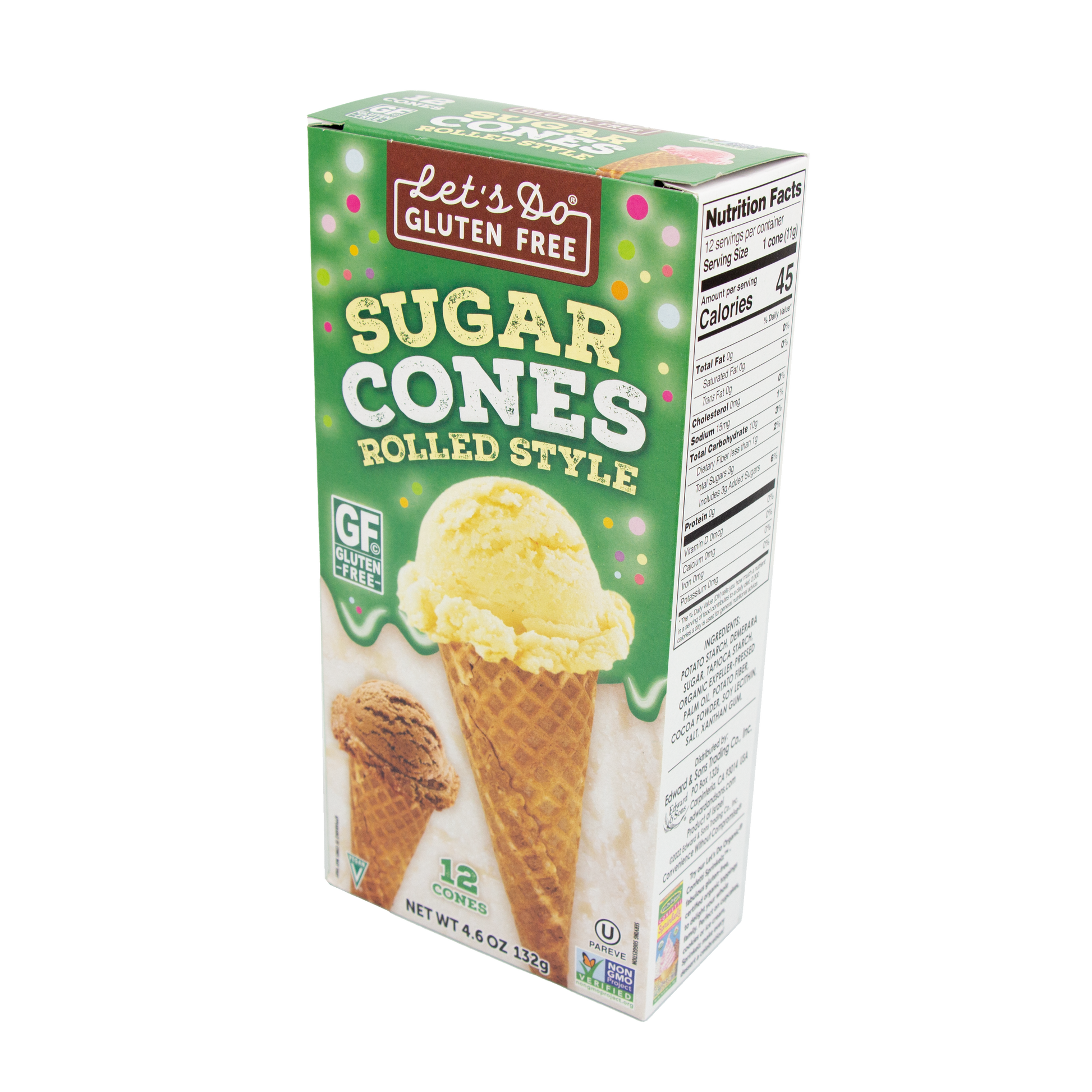 - Los conos de azúcar sin gluten Let's Do Gluten Free® están hechos con almidón de patata y almidón de tapioca y endulzados con azúcar demerara para crear conos ligeros y crujientes sin gluten para combinar con su helado favorito.