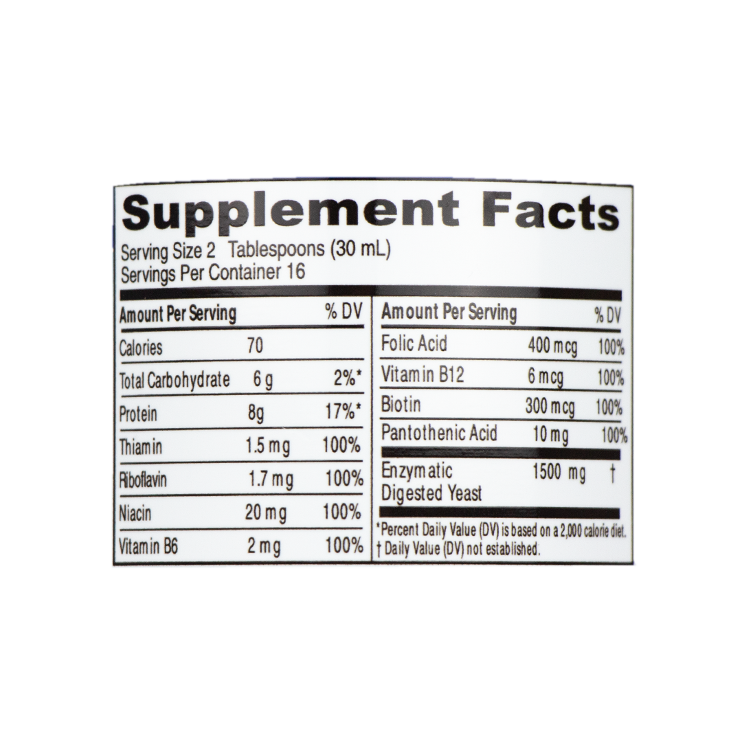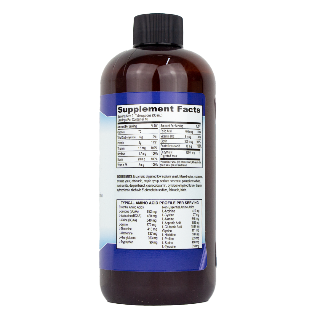 Enzymatic digested low sodium yeast, filtered water, molasses brewers yeast, citric acid, Potassium sorbate, maple syrup, sodium benzoate, niacinande, dexpanthenol, pyridoxine hydrochloride, riboflavin 5'-phosphatien Sodium, thiamin hydrochloride, folic acid, biotin, cyanocobalamin.