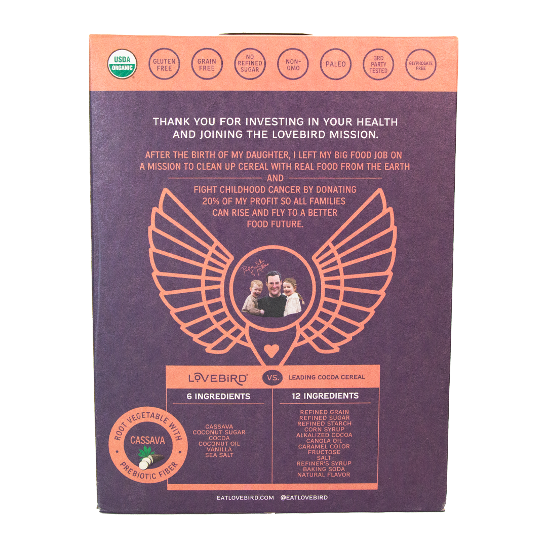 ¡Cacao ligeramente endulzado con un toque de azúcar de coco orgánico y cacao orgánico para un toque crujiente de chocolate oscuro!