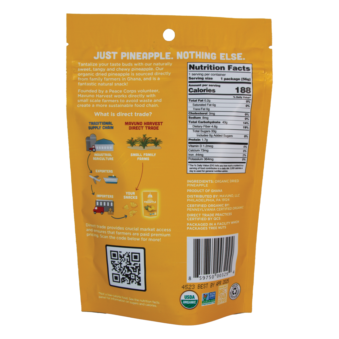La piña seca orgánica Mavuno Harvest es el refrigerio definitivo para quienes aman los sabores dulces y tropicales y desean apoyar la agricultura sostenible. Pero no se limite a confiar en nuestra palabra: pruebe usted mismo la piña seca orgánica Mavuno Harvest y pruebe la diferencia. Te encantará el sabor y la textura dulce y tropical.