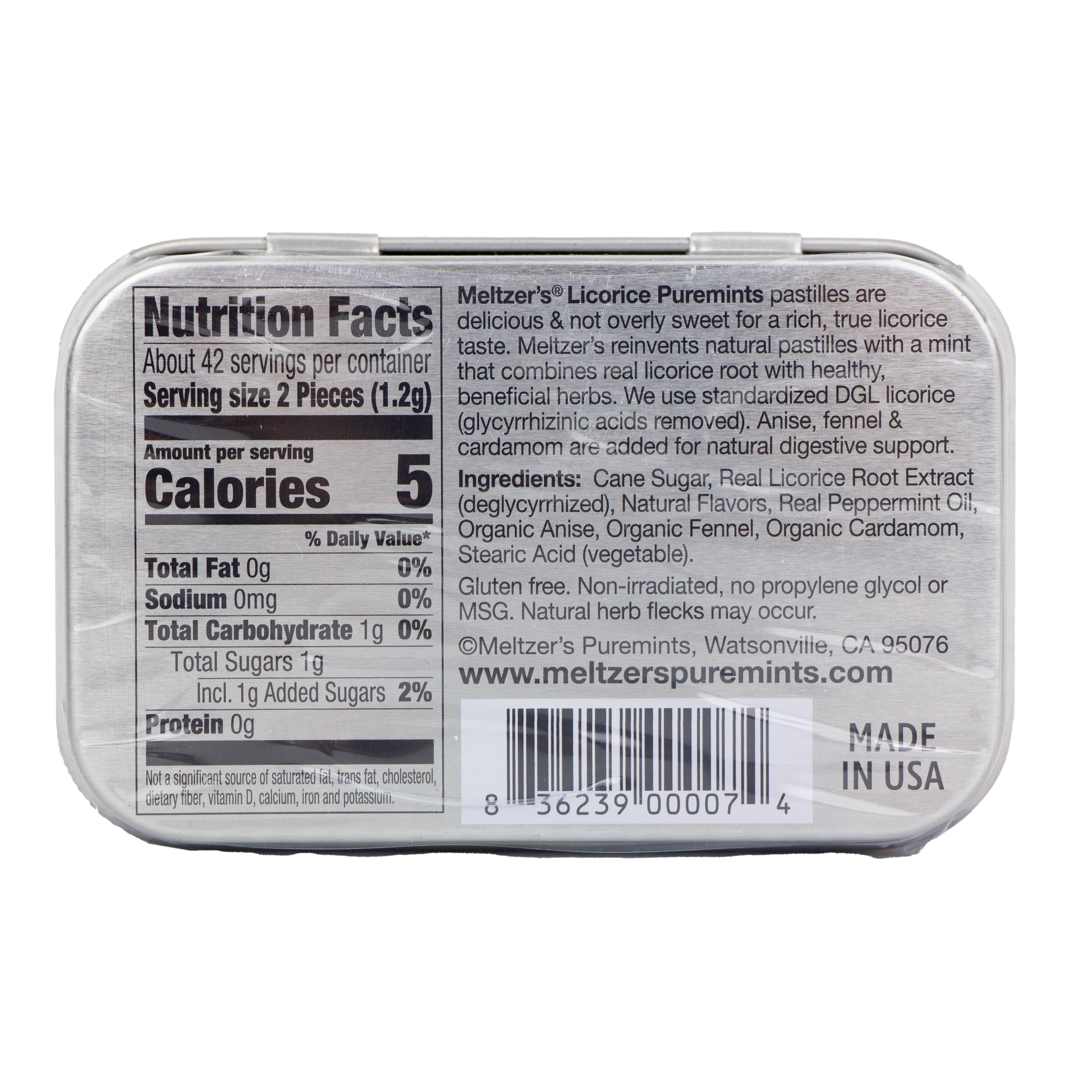 La fórmula de regaliz totalmente natural de Meltzer se mejora aún más con semillas de anís orgánico, cardamomo orgánico e hinojo orgánico para obtener la menta natural de regaliz más deliciosa y con cuerpo disponible.