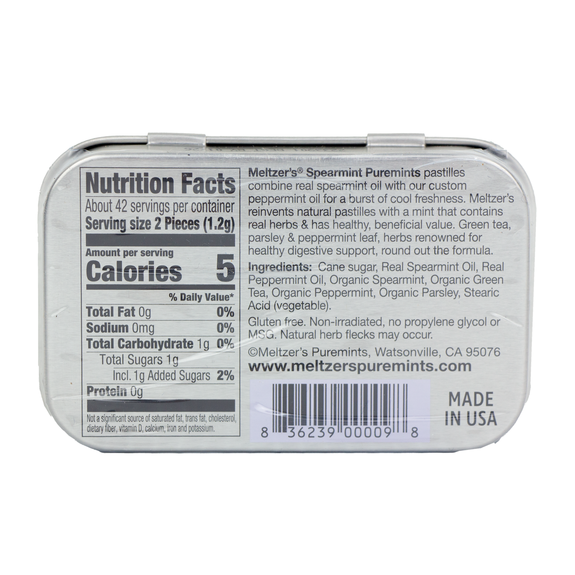 Las mentas totalmente naturales de Meltzer también contienen una mezcla de hierbas específicamente para apoyar un aliento fresco y una digestión saludable: menta orgánica, perejil orgánico, manzanilla orgánica y chlorella orgánica. Excelentes mentas naturales para el aliento y fantásticas mentas en general.