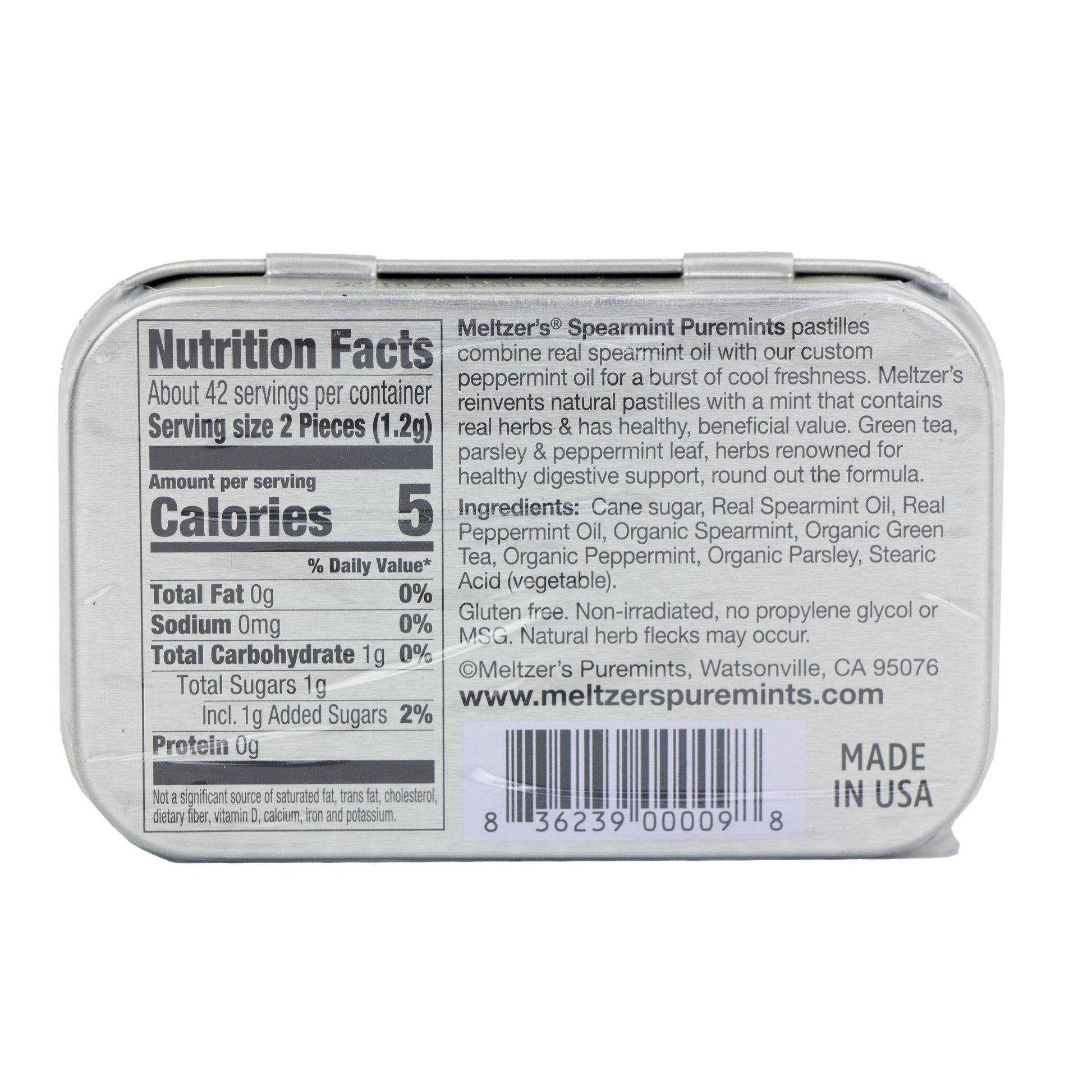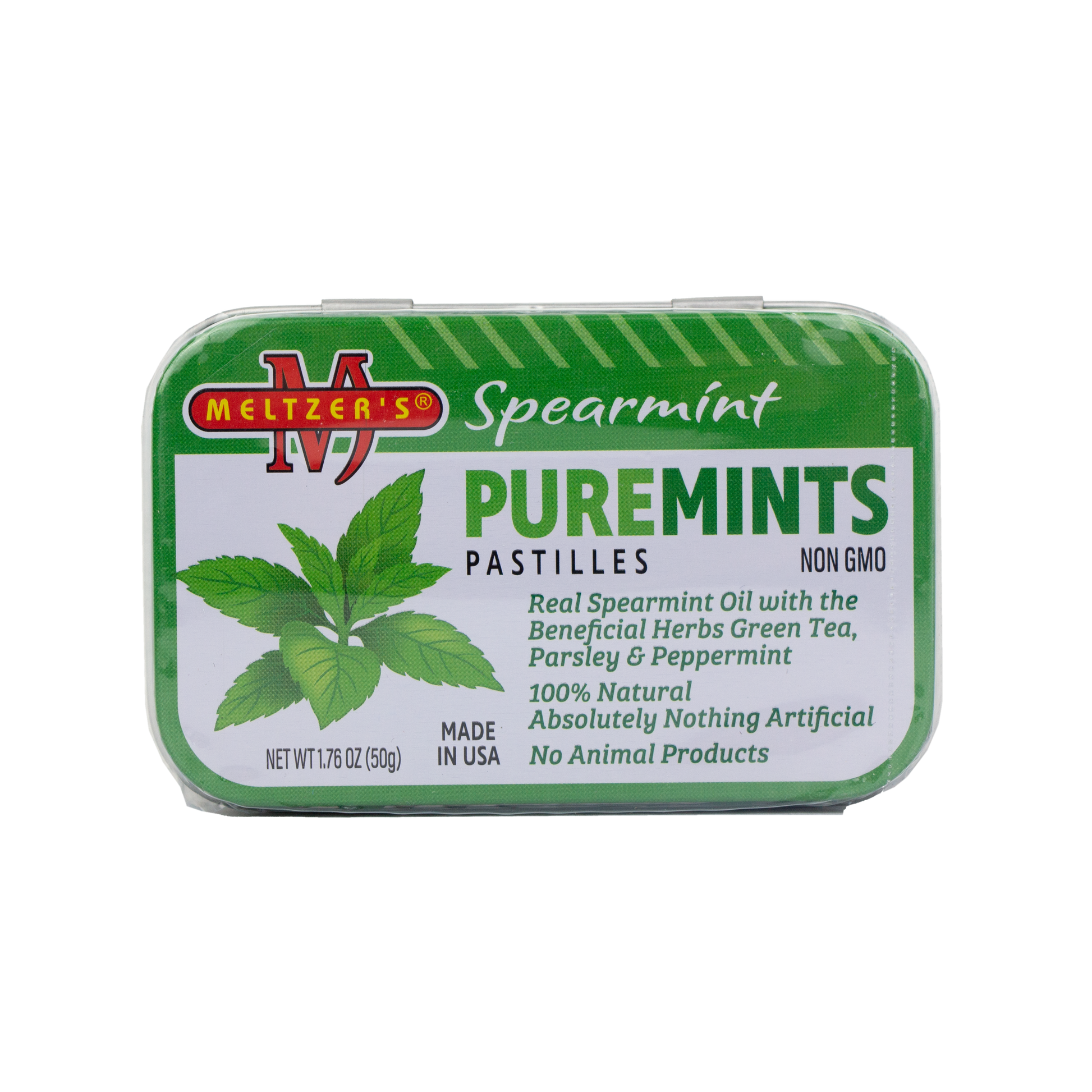 Los Puremints de menta verde natural de Meltzer están hechos con aceite de menta verde real que mezclamos cuidadosamente con su aceite de menta personalizado para obtener un sabor fresco y refrescante. Incluiyen una mezcla especial de hierbas orgánicas y saludables: perejil, hojas de menta y té verde, para hacer que las mentas verdes naturales de Meltzer sean las mejores mentas naturales que jamás haya probado.