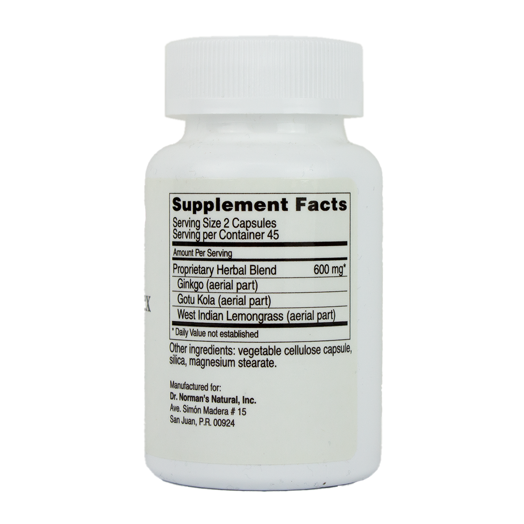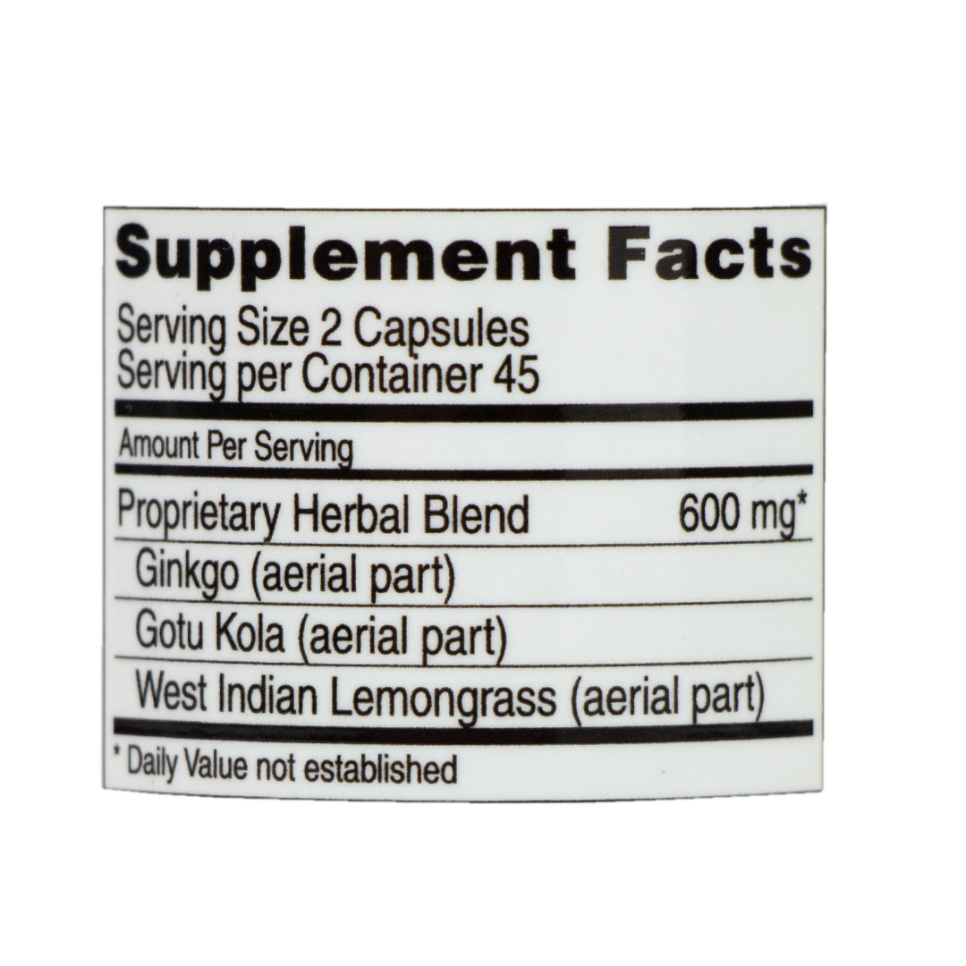 Ingredients: Ginkgo, Gotu Kola, West Indian Lemongrass
