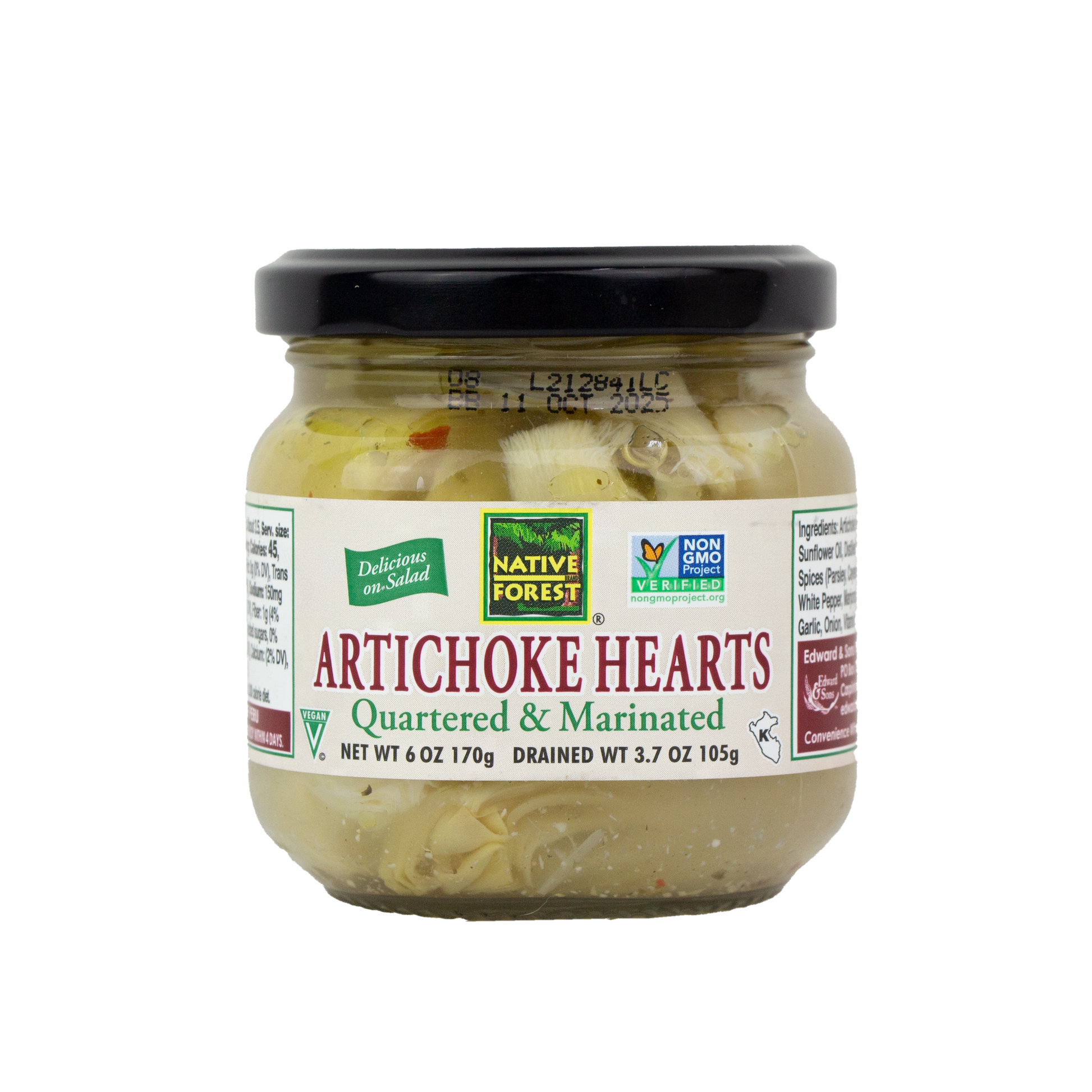 Los corazones de alcachofa en cuartos y marinados de Native Forest® están marinados en una mezcla sabrosa de hierbas y especias para obtener un ingrediente tierno, sabroso y versátil. Estos corazones de alcachofa son un aperitivo elegante y una adición versátil a muchos platos, desde ensaladas hasta antipasto y aderezos para pizza, ¡o cómelos directamente del frasco!