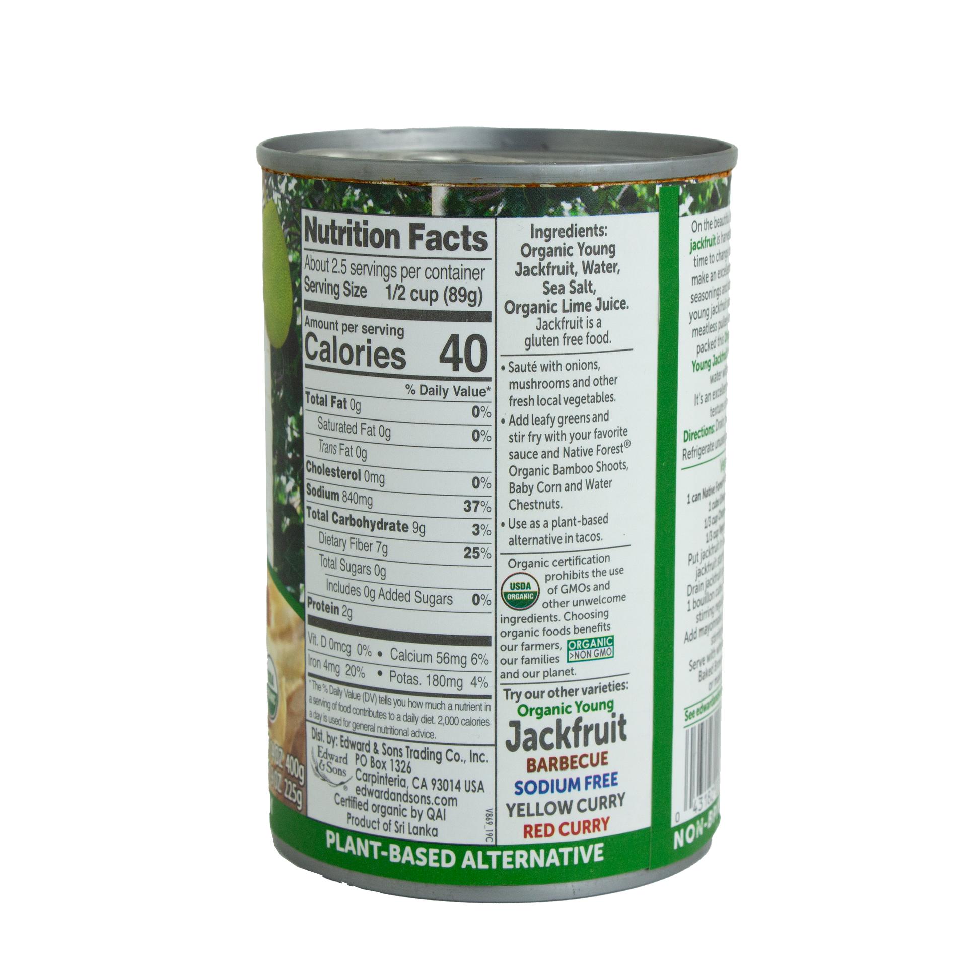 Ingredients: Organic Young Jackfruit, Water, Sea Salt, Organic Lime Juice.