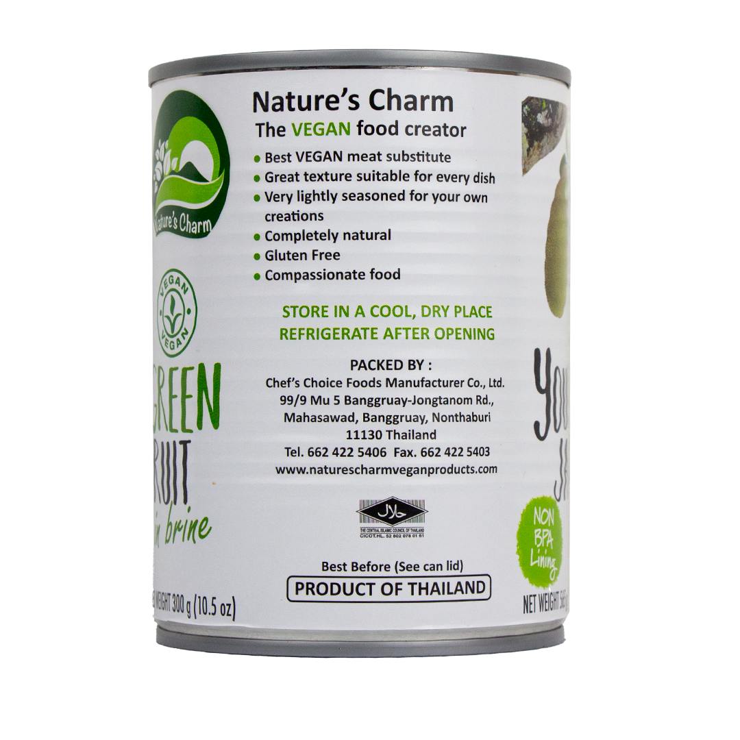 Nature's Charm young green jackfruit in brine es un sustituto vegano de la carne con textura de carne de cerdo.