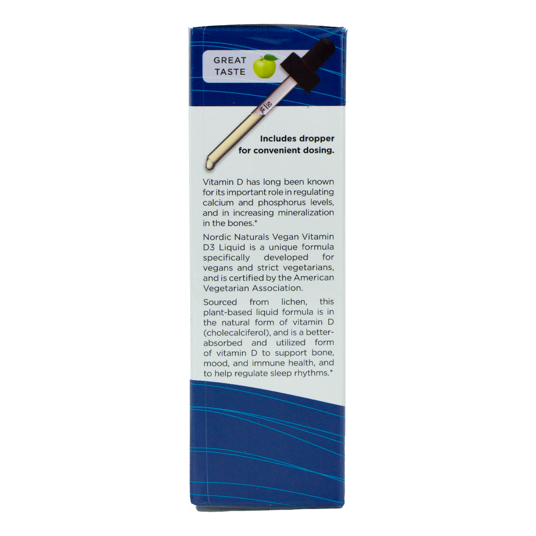 Ingredients: Medium chain triglycerides (from coconut oil), natural apple flavor, vitamin D3 (from lichen), d-alpha tocopherol acetate (a natural antioxidant).