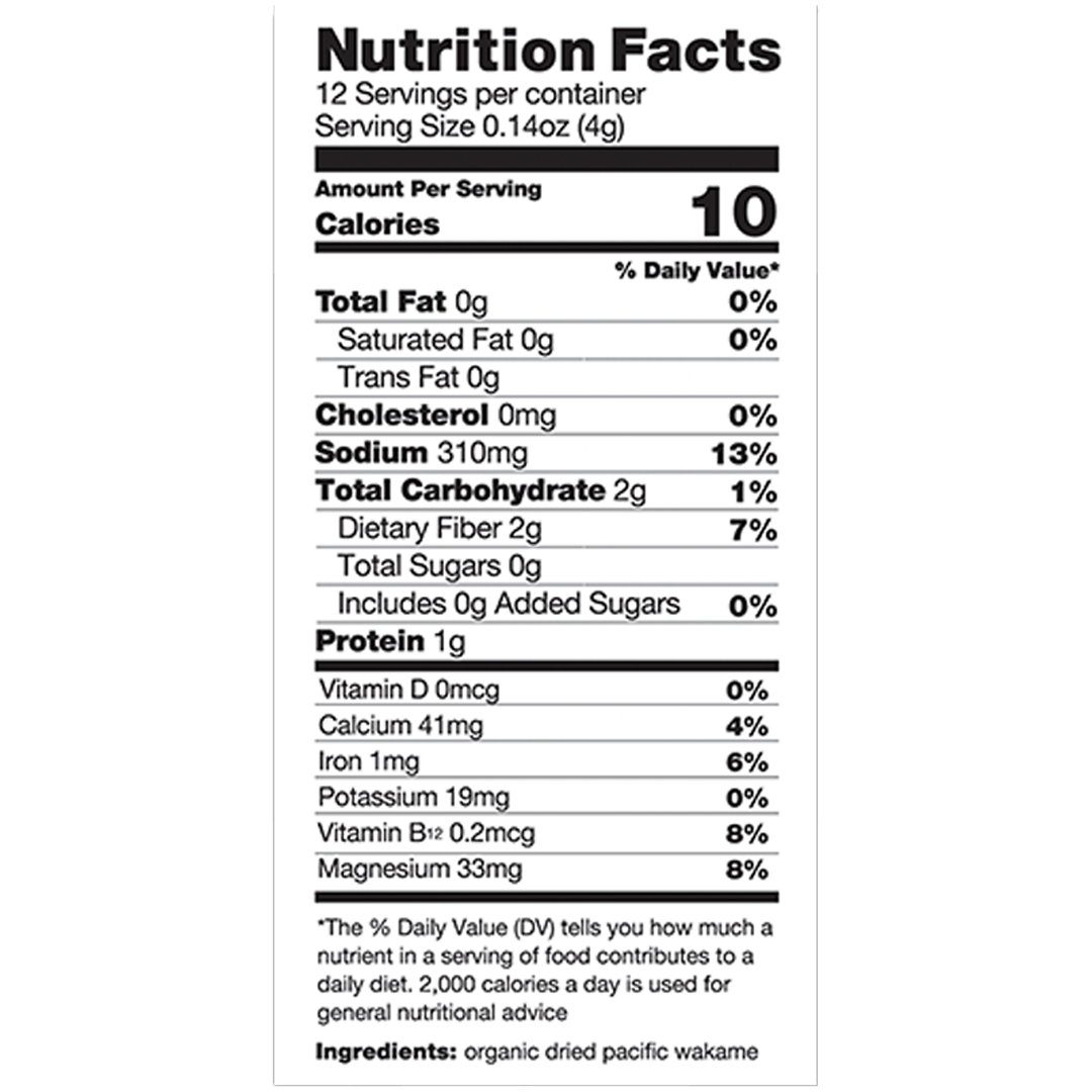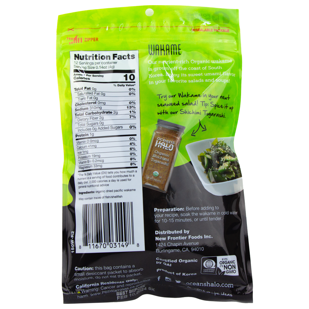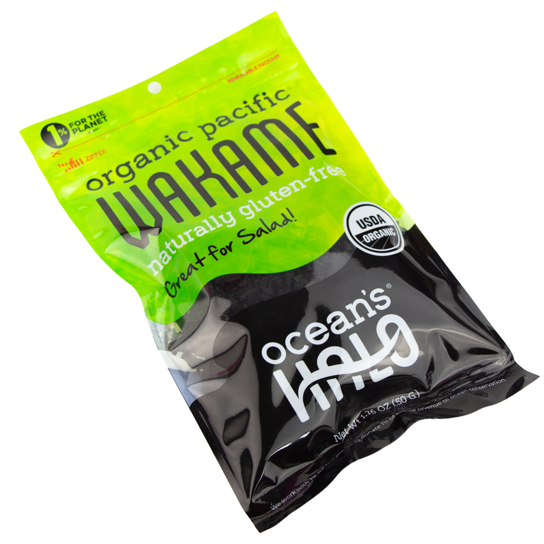 Este Wakame orgánico rico en nutrientes es dulce y de sabor umami, perfecto para tus ensaladas y sopas favoritas. Usa el Wakame en tu próxima ensalada de algas.