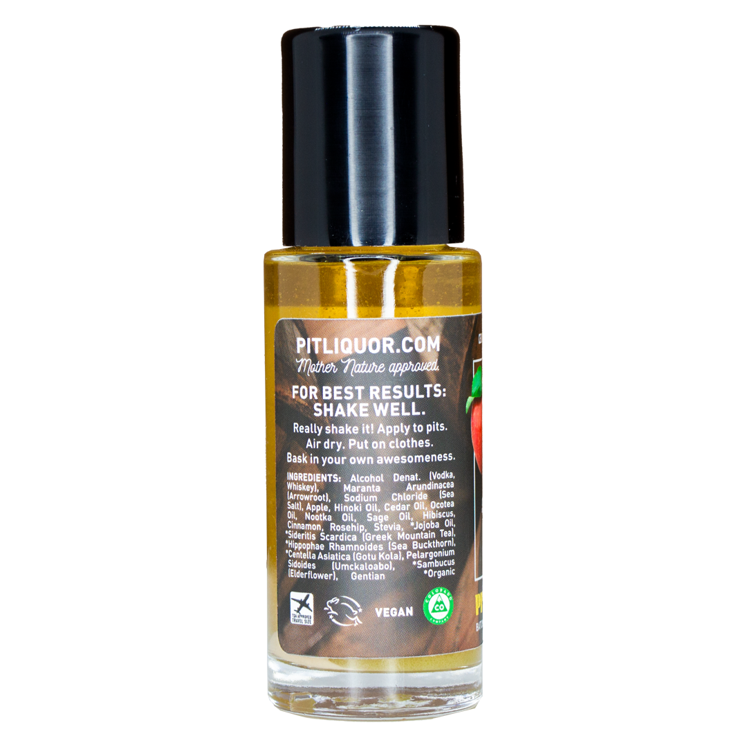 Vegano y libre de crueldad animal. Fabricado en pequeños lotes en Colorado, empaquetado en botellas de vidrio reciclables.