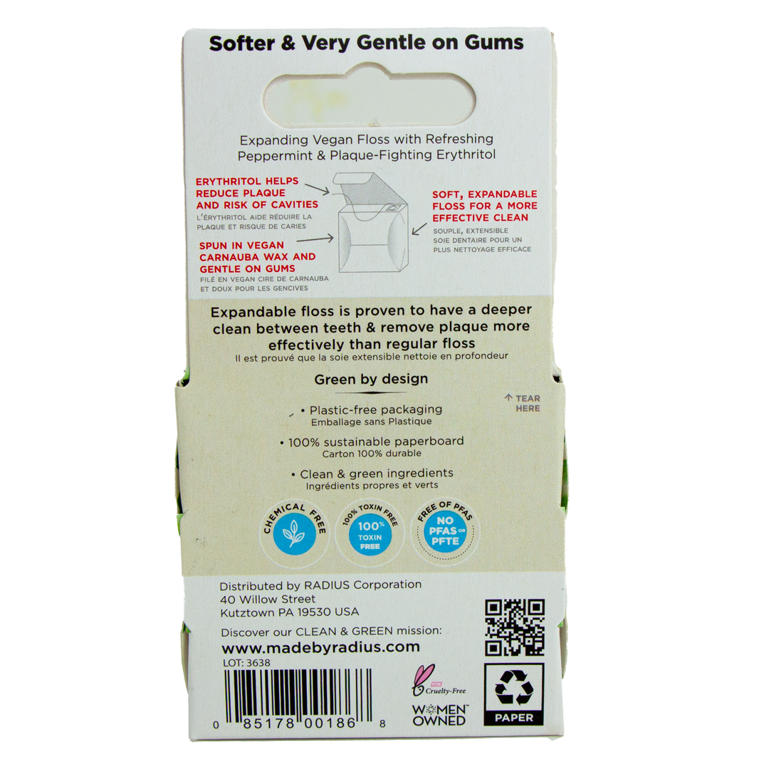 ¡Dile adiós al plástico! Nuestros hilos dentales de esponja están empaquetados en envases 100% libres de plástico. Nuestro hilo dental esponjoso vegano está hecho de nailon expandible y está recubierto con aceite de coco orgánico y eritritol para ayudar a prevenir las caries y eliminar la placa para una boca limpia definitiva.