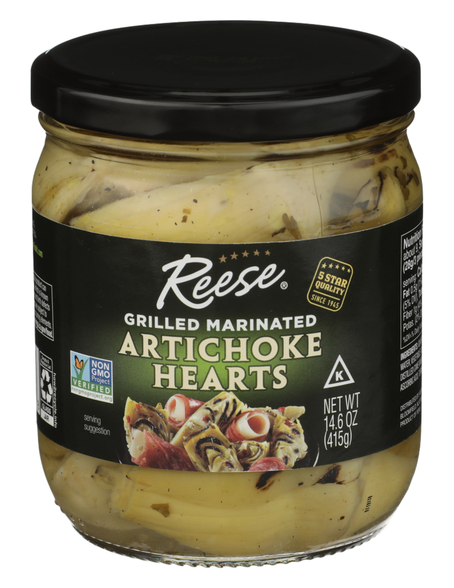 Los corazones de alcachofa marinados a la parrilla de Reese son iguales a nuestros corazones de alcachofa marinados, excepto que estos se asan a la parrilla para agregar un fuerte sabor ahumado.