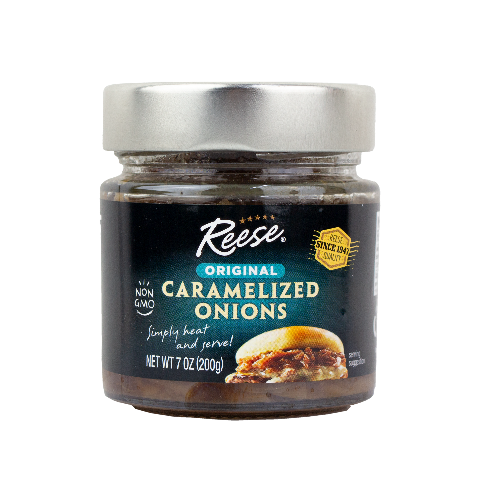 Las cebollas caramelizadas Reese Original son un complemento perfecto para cualquier comida. Este producto sin OGM se cuece lentamente a fuego lento en especias tradicionales para resaltar su dulzura y sabor. Agregue un delicioso sabor y textura a sus platos favoritos con las cebollas caramelizadas originales de Reese.