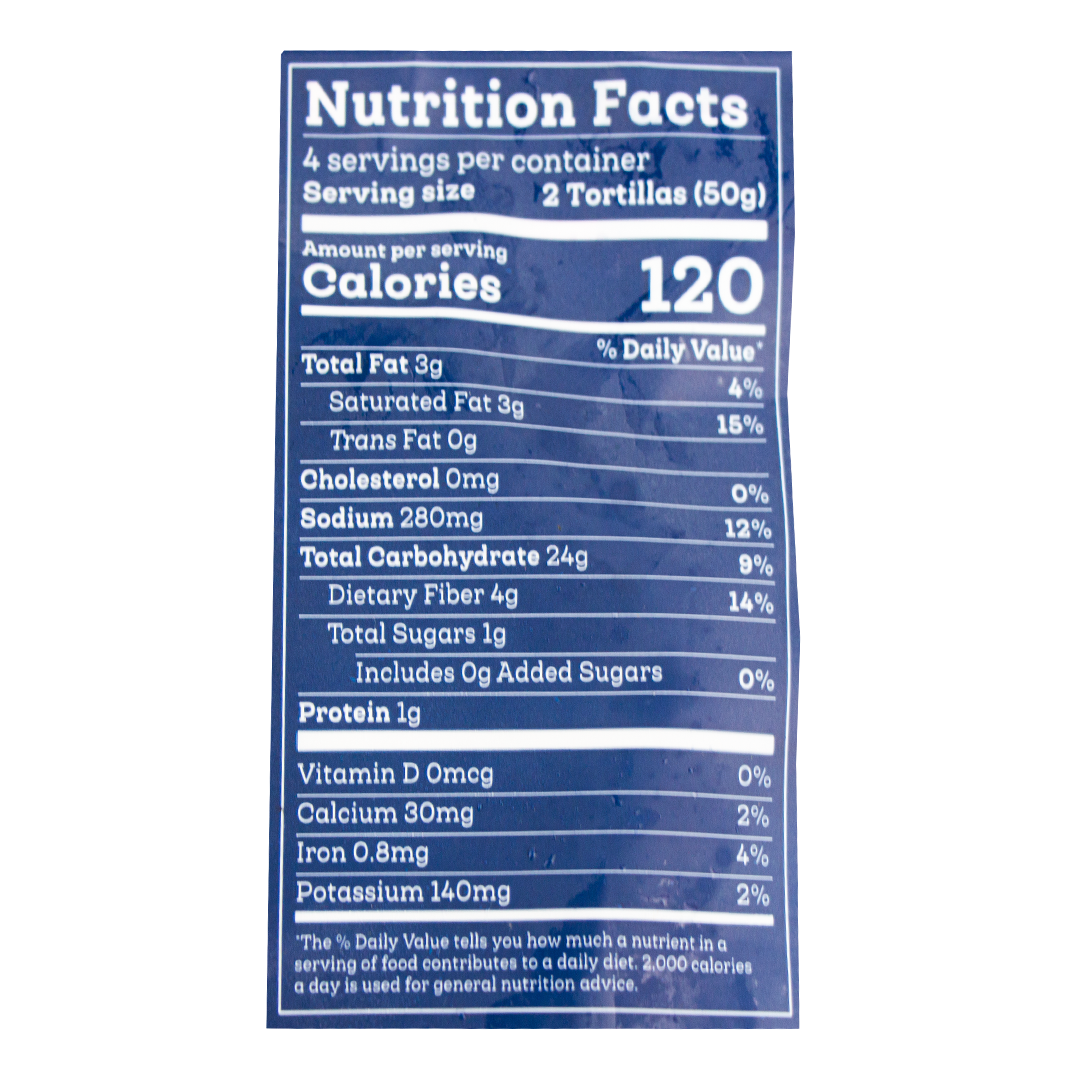 Estas tortillas sin granos miden aproximadamente 6'' de diámetro.
