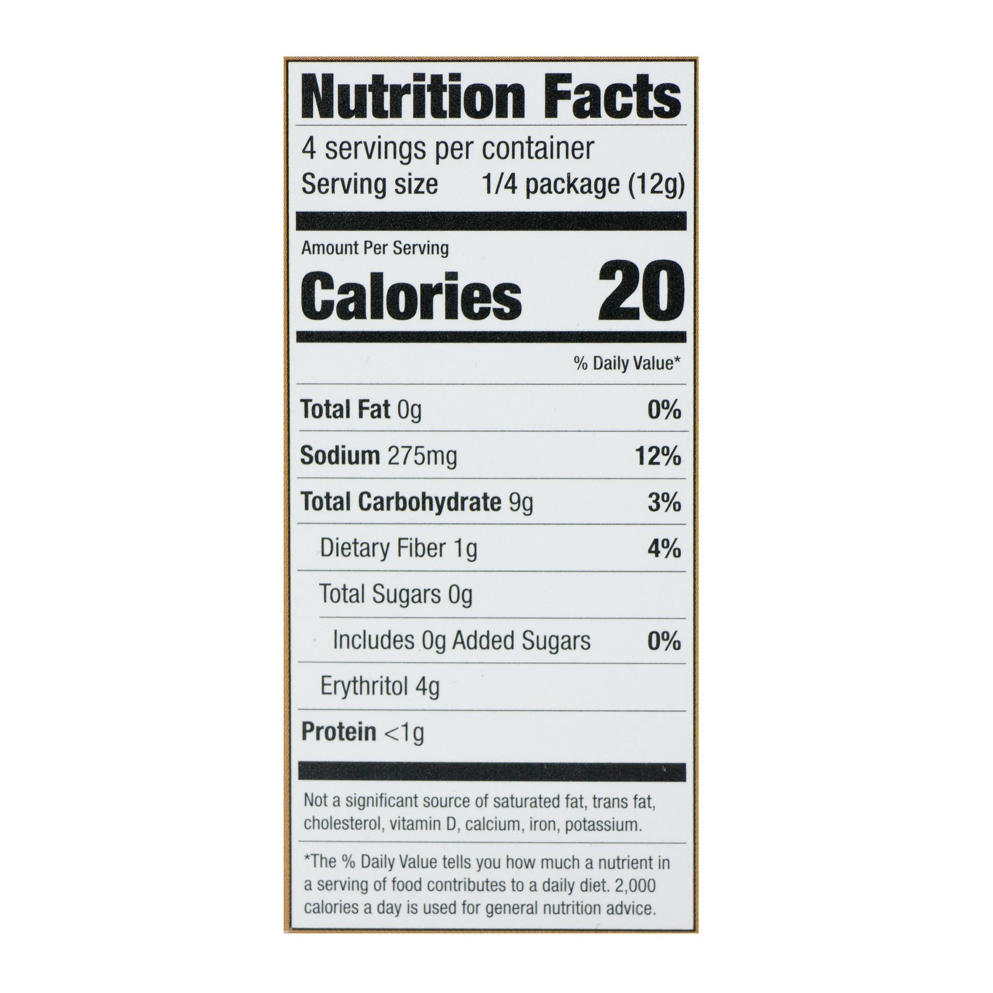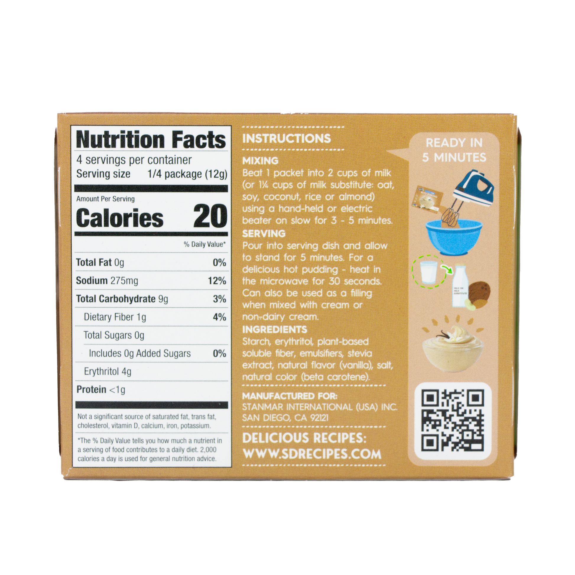 Ingredientes: almidón (patata), eritritol, dextrina, emulsionantes, aroma natural (vainilla), extracto de stevia, sal, colorante natural (caramelo).