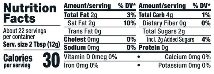 Agua filtrada, aceite de coco orgánico, jarabe de tapioca orgánico, azúcar de caña orgánica, proteína de guisante, goma guar, lecitina de girasol, goma xantana, saborizante natural.
