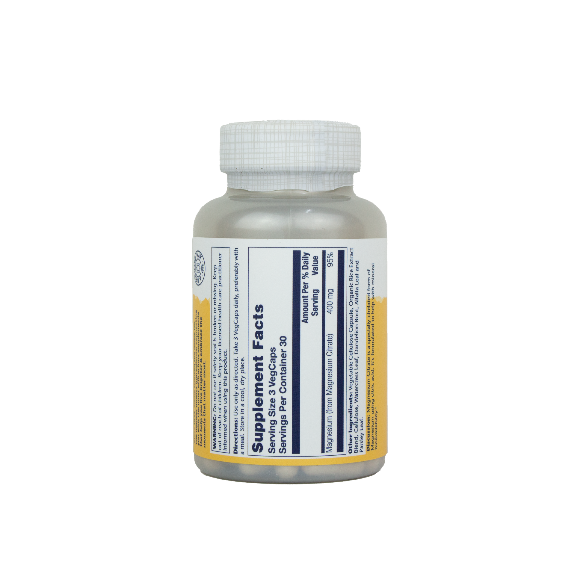Solaray Magnesium Citrate 400 está formulado para proporcionar un apoyo nutritivo para una función saludable del corazón, los músculos, los nervios y la circulación. Pero, ¿de qué sirve el magnesio si tu cuerpo tiene problemas para absorberlo? A diferencia de los suplementos de magnesio menos biodisponibles, el citrato de magnesio de Solaray está quelado con ácido cítrico diseñado para mejorar la absorción y facilitar la digestión, formulado para funcionar mejor que otros suplementos de magnesio. Ahora, puede tomar un suplemento de magnesio sabiendo que su cuerpo recibirá los máximos beneficios.