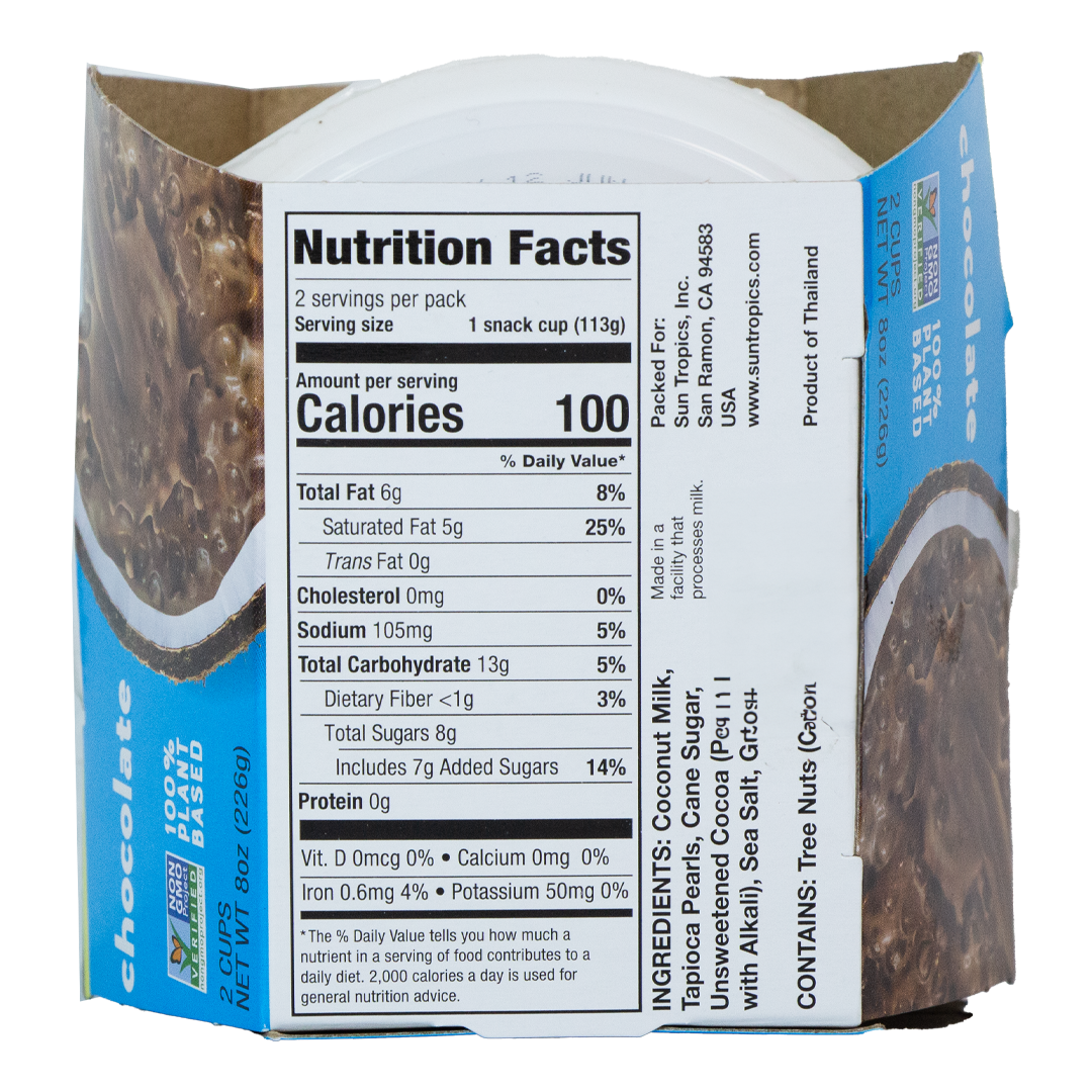 Coconut milk,, tapioca pearls, cane sugar, unsweetened cocoa (processed with alkali), sea salt, guar gum.