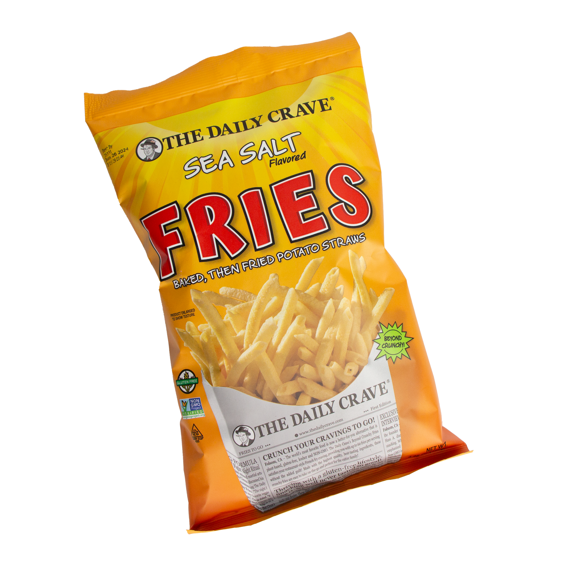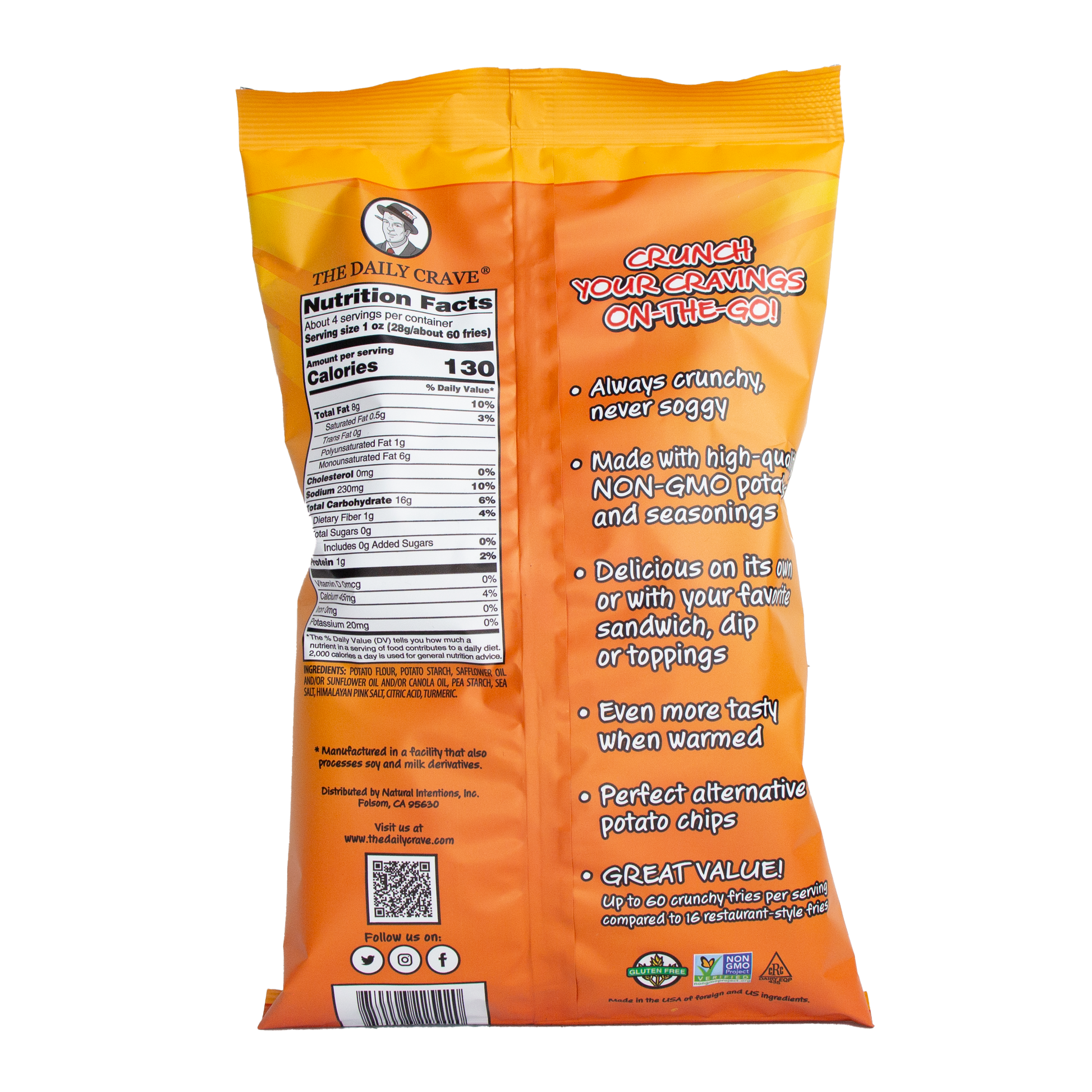 Prueba The Daily Crave Fries Sea Salt, una deliciosa combinación de dos snacks clásicos. Estas papas fritas horneadas están elaboradas exclusivamente con sal marina y pajitas de papa ligeramente fritas para una experiencia crujiente y sabrosa. Disfruta del snack perfecto para cualquier ocasión.