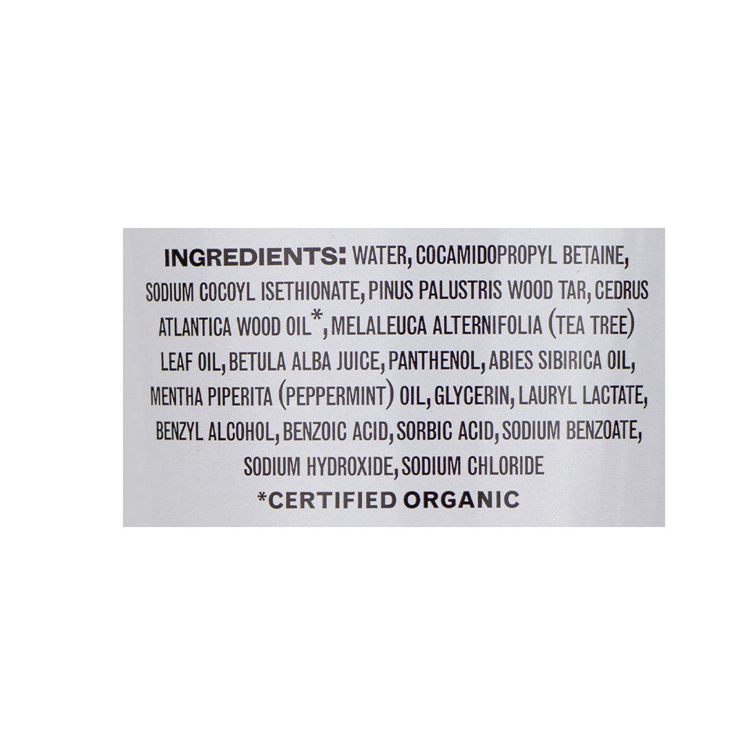 El gel de baño 100 % vegetal de alquitrán de pino ofrece las propiedades limpiadoras, desodorantes e hidratantes del aceite de árbol de té y el aceite de madera de cedro. Fresco y amaderado, es como un bosque de otoño con volutas persistentes de fogata en el aire.