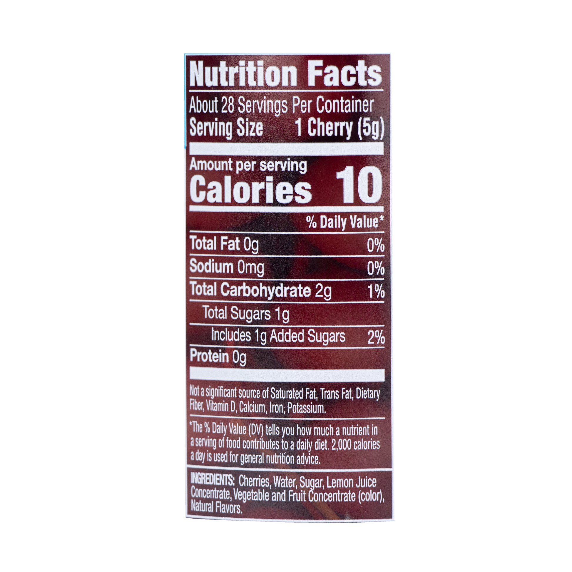 Cherries, Water, Sugar, Lemon Juice Concentrate, Vegetables and Fruit Concentrate (color), Natural Flavors.