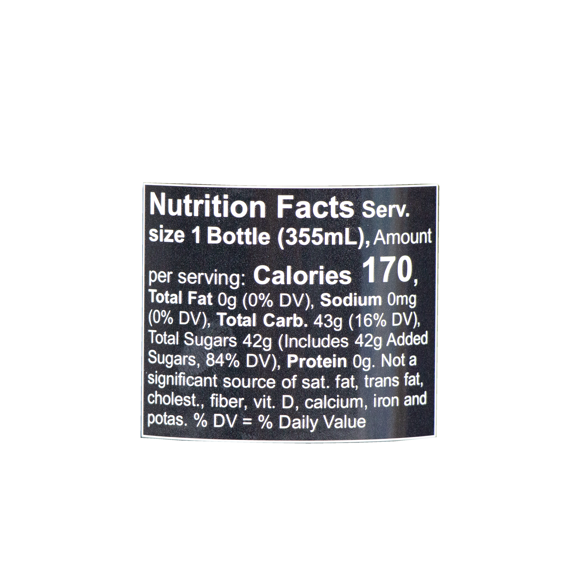AGUA FILTRADA CON GAS, AZÚCAR DE CAÑA, SABORES NATURALES, JUGO PARA EL COLOR, ÁCIDO MÁLICO.