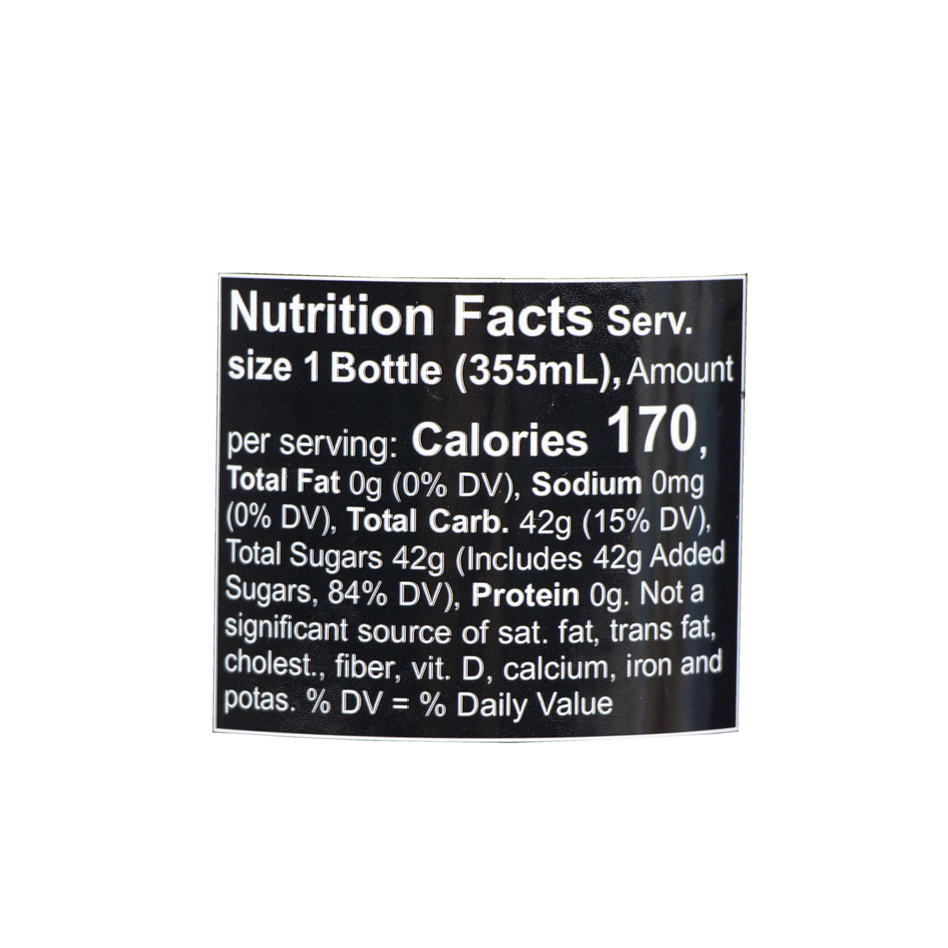 AGUA FILTRADA CON GAS, AZÚCAR DE CAÑA, SABORES NATURALES, COLOR CARAMELO, ÁCIDO CÍTRICO.
