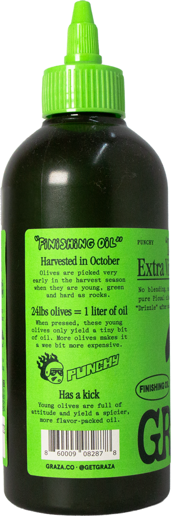Se recolectan en octubre, antes de que las aceitunas maduren por completo. Se recogen a mano porque las aceitunas jóvenes necesitan un tirón firme para soltarse. Por suerte, su terquedad solo nos hace quererlas aún más.