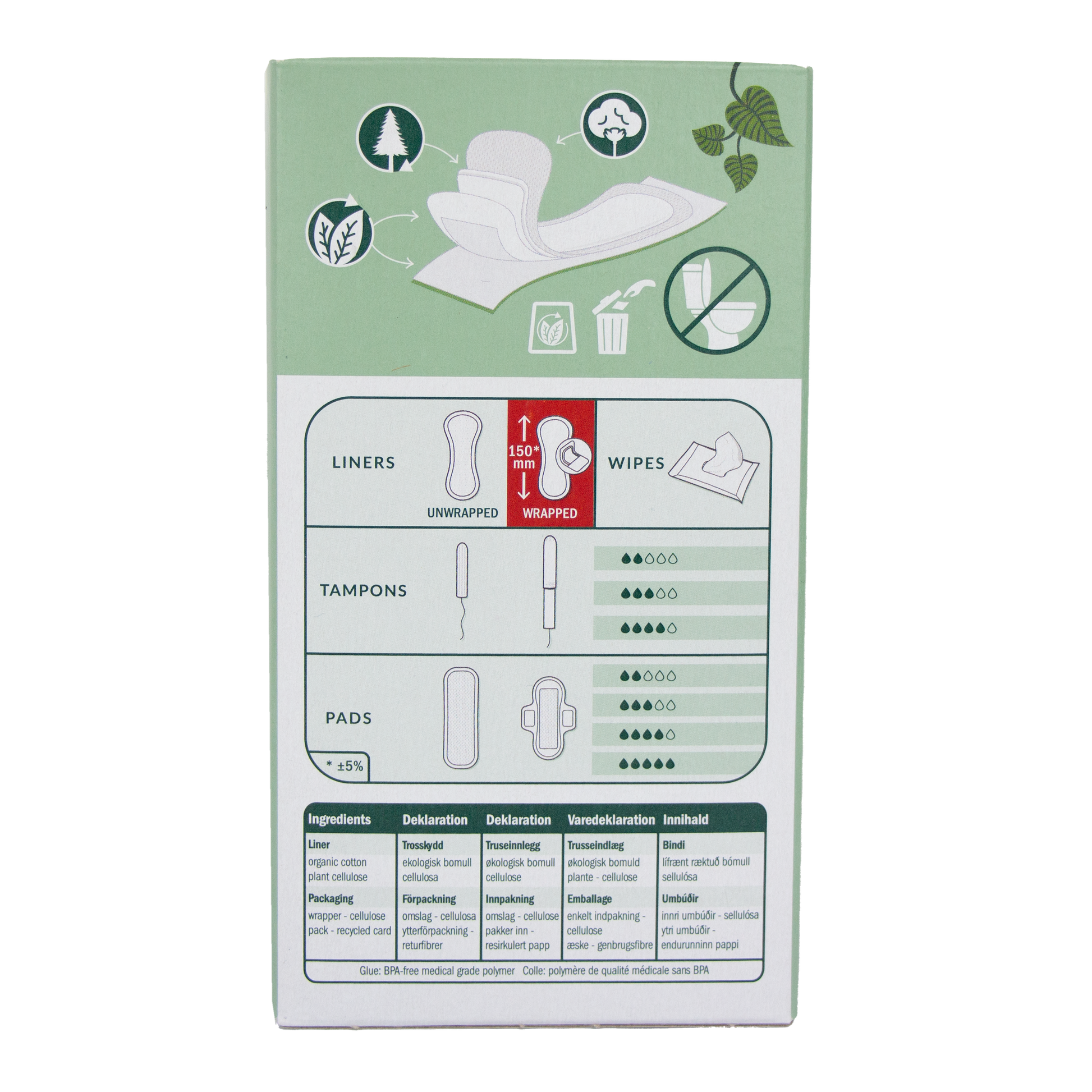 Forro: Algodón orgánico certificado, pulpa de celulosa ecológicamente certificada, almidón vegetal